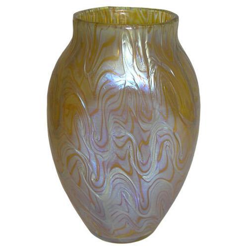 <tr><td><font size="2" face="Arial, Helvetica, sans-serif"><strong><font color="#000033">Title:</font></strong>Iridescent Golden Glass Vase by Loetz</font></td></tr>