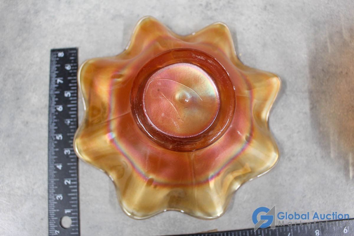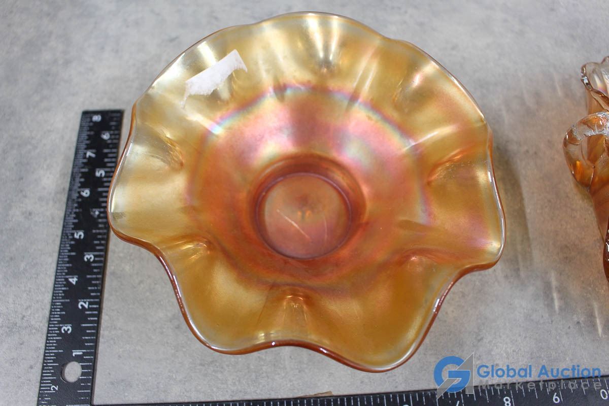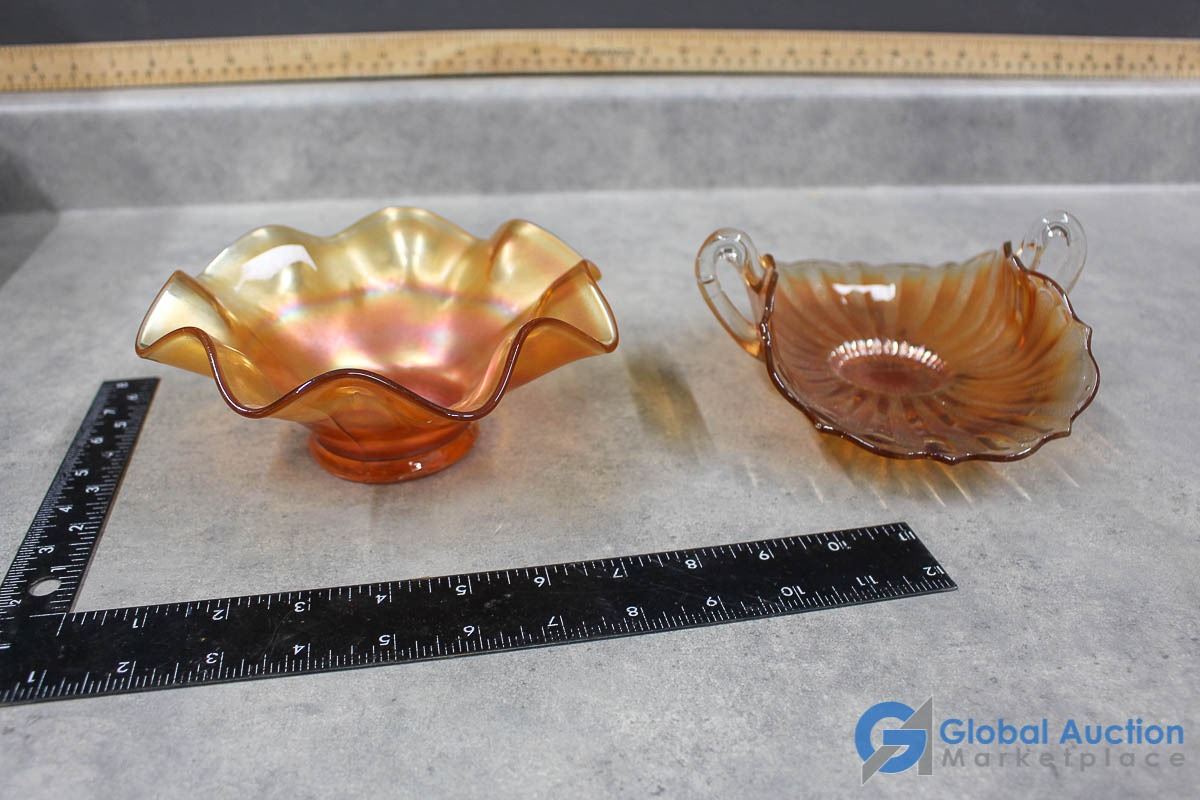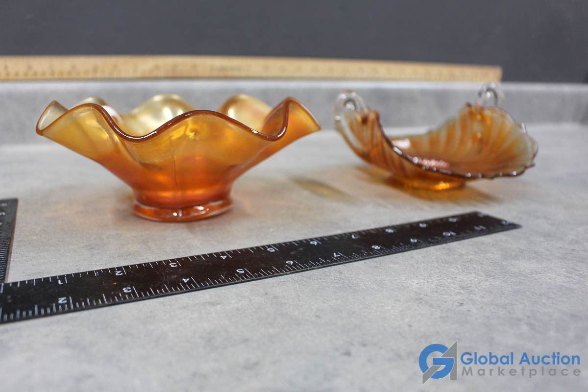 Iridescent Peach Glass Candy Dishes