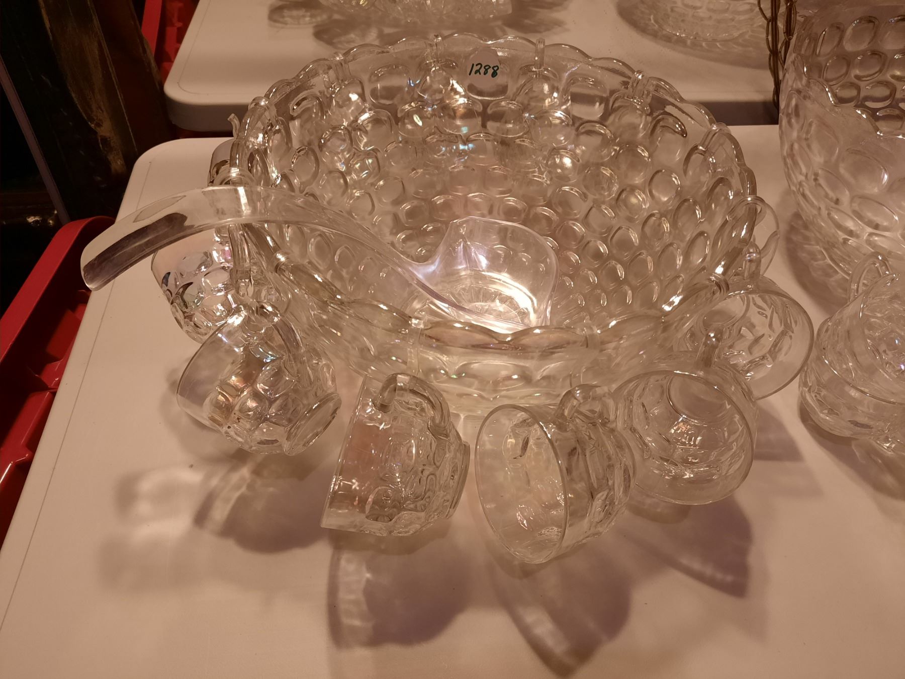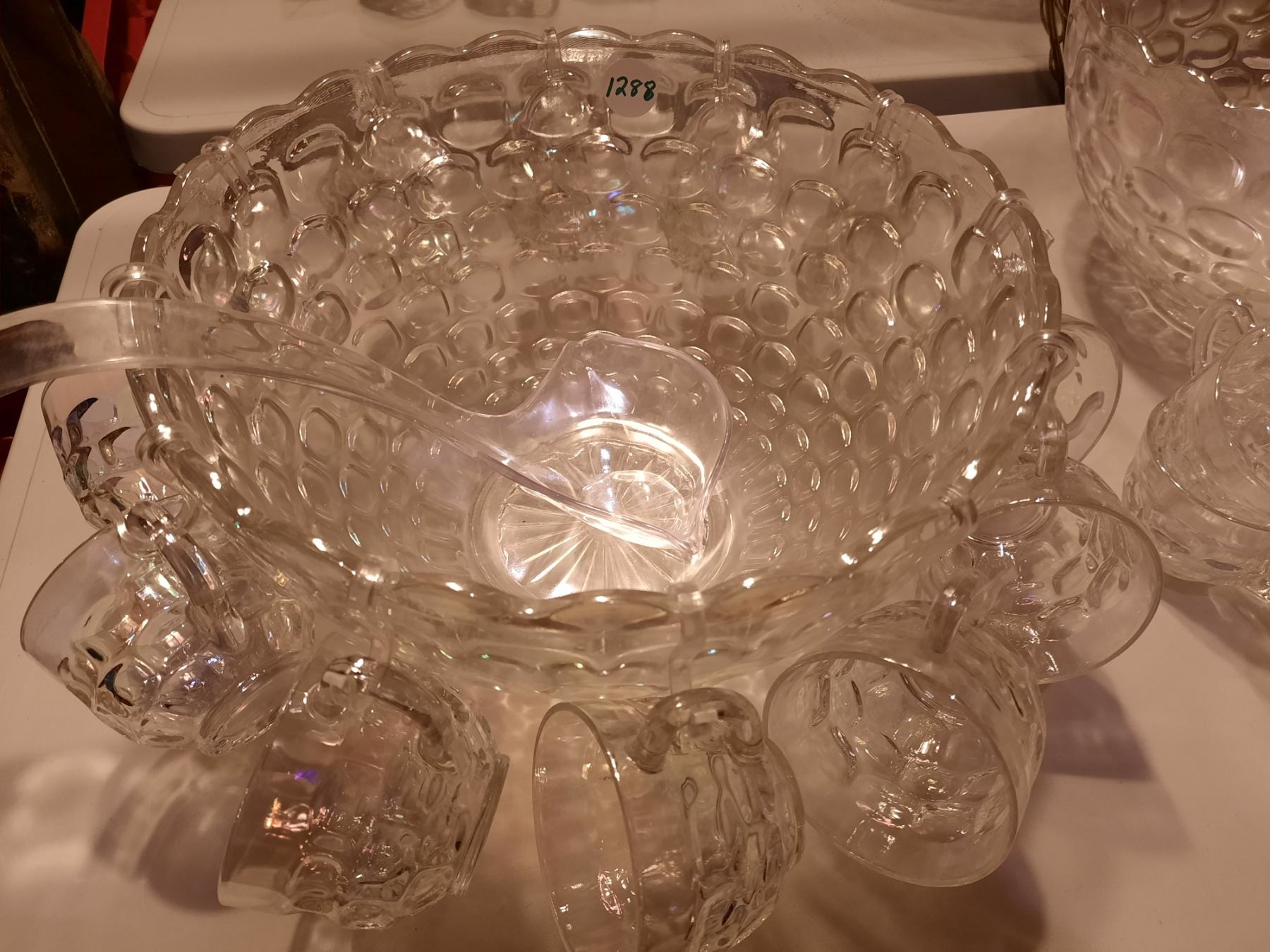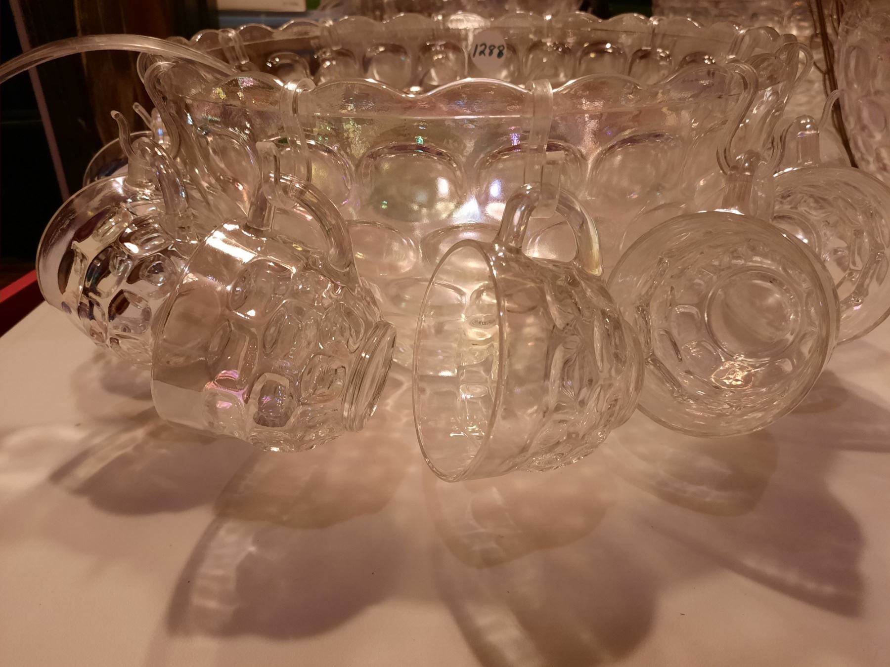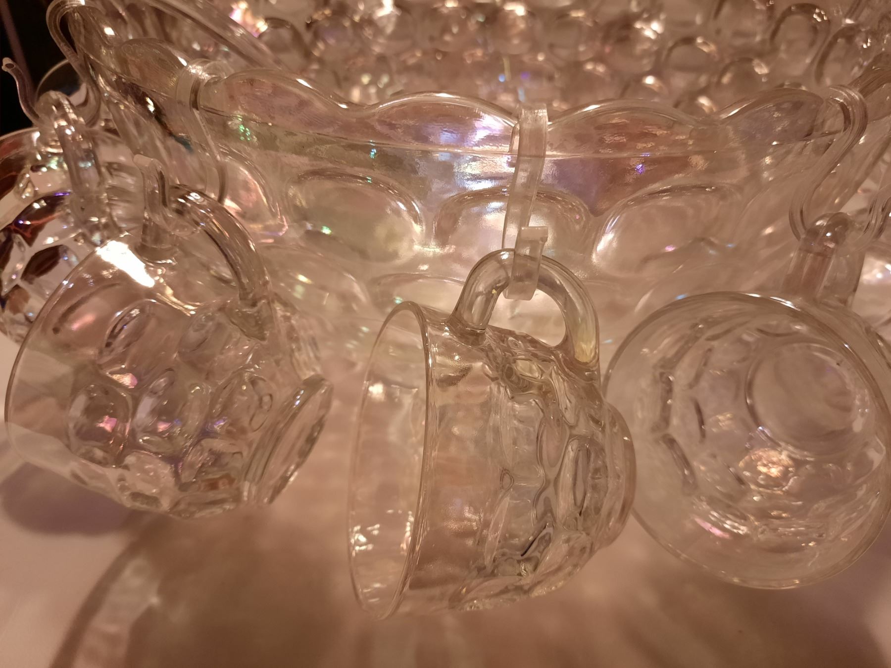 Iridescent Punch Bowl with 12 Cups, Hooks & Ladle