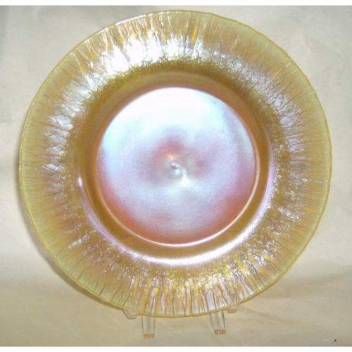 Iridescent stretched glass plate, 7 1/2"diam