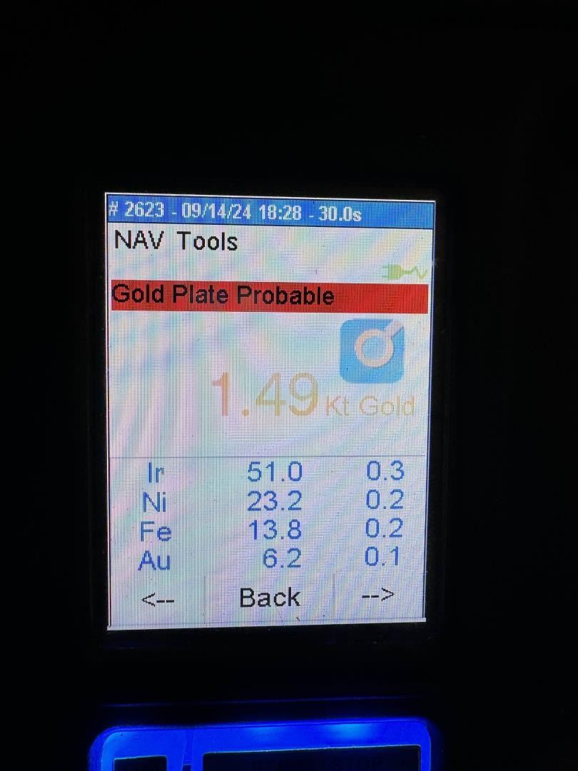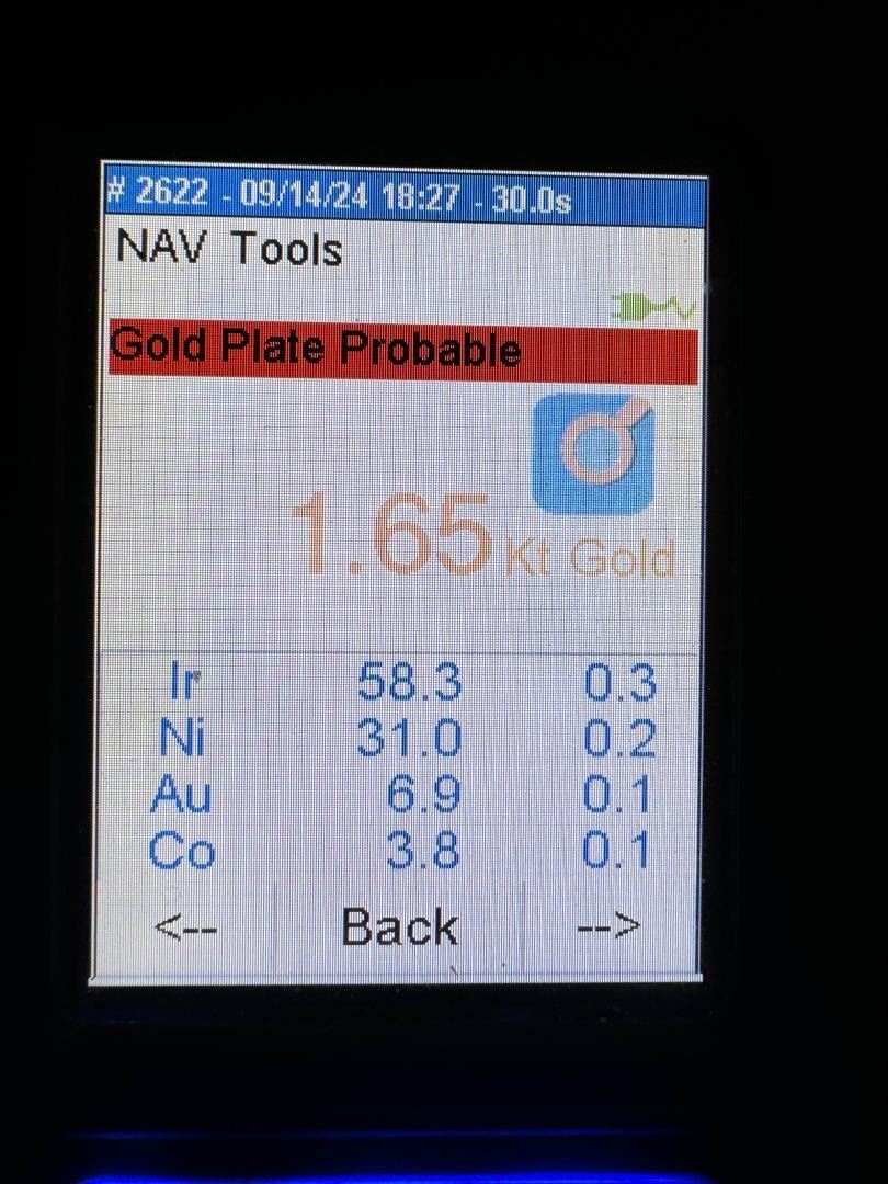 2 3/4" by 1 1/2" by 1". 218 grams. Has been tested on Niton DXL800 analyzer, results are photographed. Each result is from the rotation of the ingot onto different sides. As the metals are mixed we decided it was best to show scans from each side. Tests as between 50-57% pure iridium with Gold, Nickel, Cobalt, and Iron. Provenance: From the Estate of Kitty's Copper Shop Butte Montana.