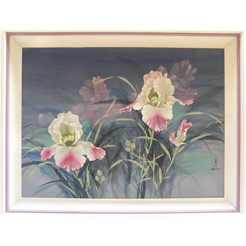 Originally purchased and appraised in 1990 Iris is a stunning, framed painting of Chinese ink on silk by David Lee. This painting will look beautiful in the home or office, and the contemporary style frame compliments it well.