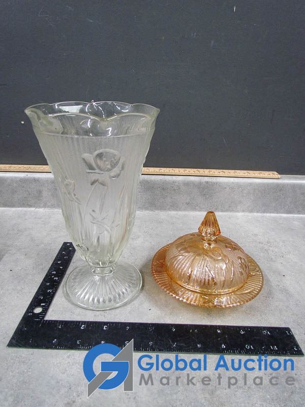 Iris&Herringbone Butter Dish and Iris Herringbone Glass Vase