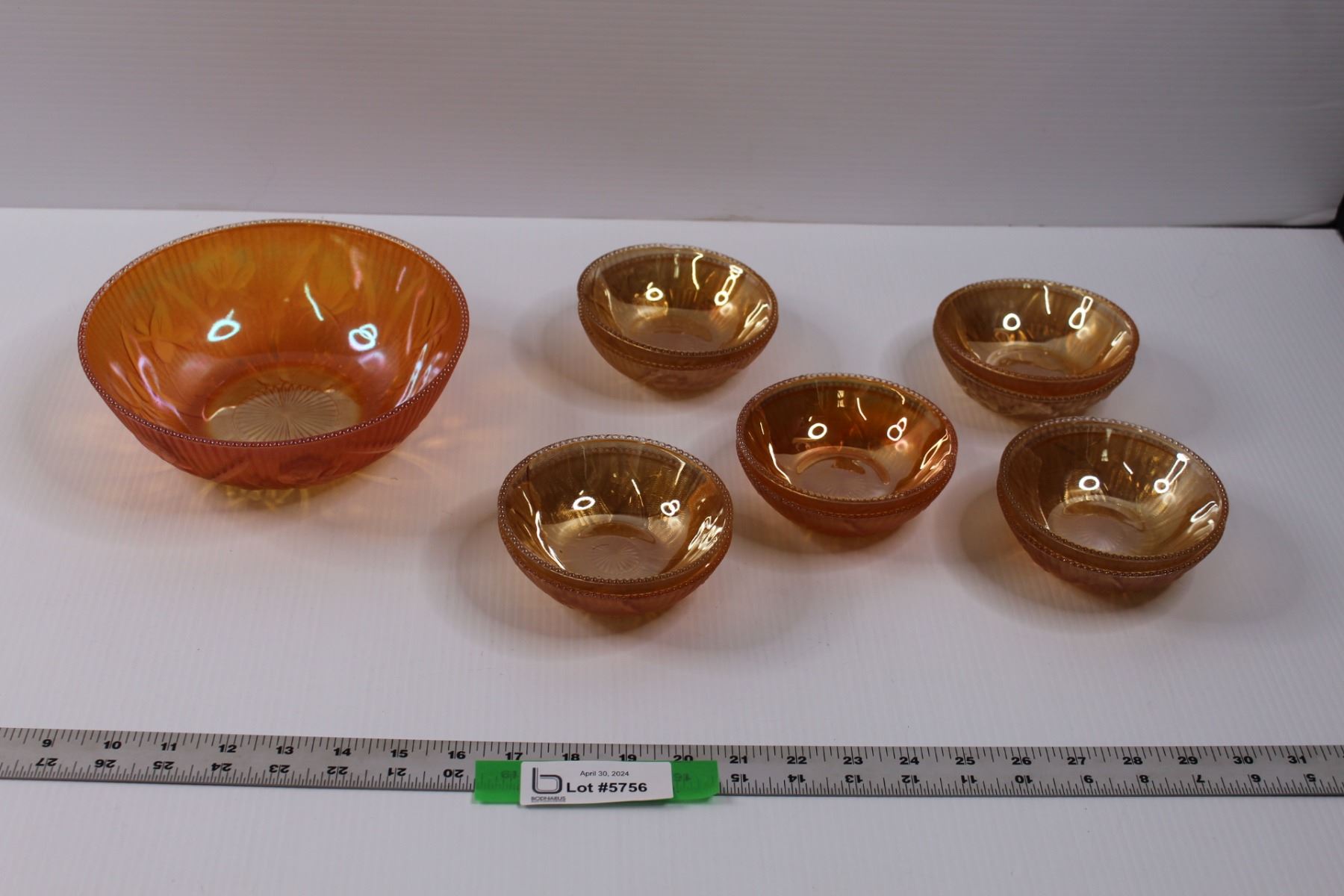 Iris & Herringbone Iridescent Bowls - (1) Serving Bowl & (10) Small (Few Chips)