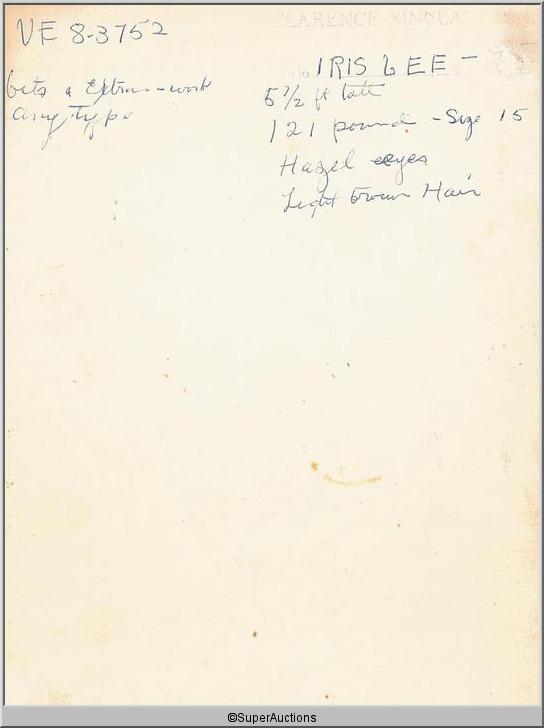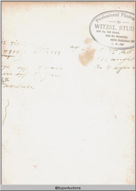 Iris Lee Tingley, Stand-In for Marie Dressler / (1) 6 x 8 Original Headshot Autographed Photograph By Witzel Studios / (1) Iris Lee Tingley Headshot Photograph By Clarence Sinclaire Ball VE8-3752