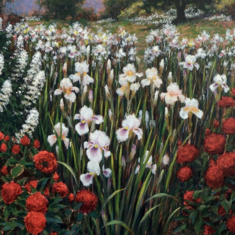 "Irises In A Meadow" is a limited edition giclee on paper by Brian Davis, numbered and hand signed by the artist. Includes Certificate of Authenticity! Measures approx. 34" x 44" (with border), 30" x 40" (image).