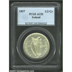 Irish Free State 1/2 Crown 1937, KM8, AU55 PCGS, untoned with minimal wear on the highpoints. The fi