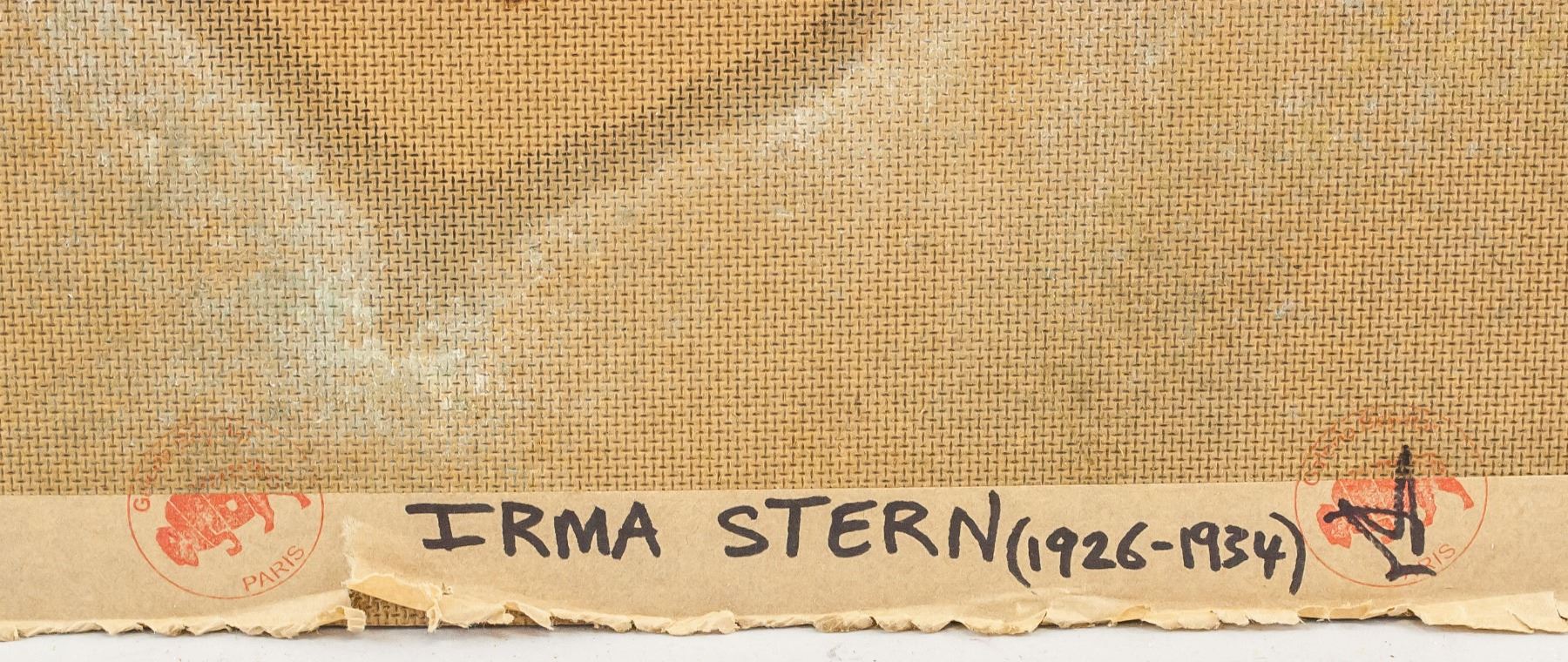 Oil on board. Featuring portrait of a figure wearing a gold headdress and earrings. Floral patterned curtains hang behind the figure. Signed "Irma Stern" to the top right, with "1942" inscribed beneath the signature. Black and white photos affixed to verso stamped with "Irma Stern 1926-1934". Stamped with "Galerie Beyeler PARIS" on and around photo. "IRMA STREN (1926-1934)" inscribed near bottom on verso. Attributed to Irma Stern (1894-1966, South African). 53 x 57 cm (20.7 x 22.5 inches). Provenance: This lot carries limited provenance from a Private English collection