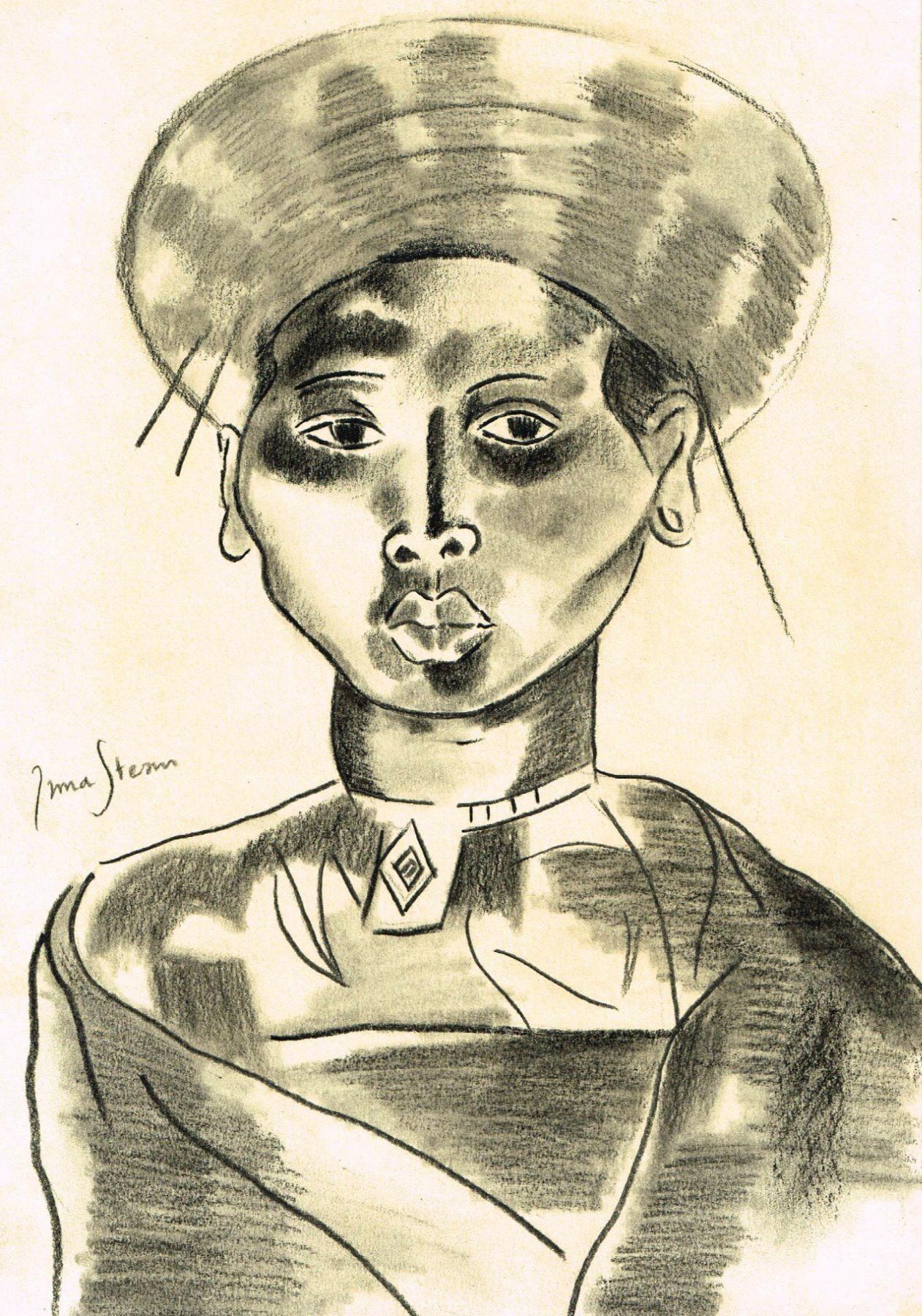 A charcoal drawing of an African Woman by Irma Stern. Irma was the recipient of numerous awards in her lifetime including the Molteno Grant for outstanding work (1952), the Guggenheim Foundation National Award for South Africa (1960), the Oppenheimer Award (1963) and the Medal of Honor of Die Suid-Afrikaanse Akademie vir Wetenskap en Kuns (1965). She was also selected to represent South Africa at the Venice Biennale in 1950, 1952, 1954 and 1958. Stern was a prolific artist and exhibitor, with shows throughout her lifetime and beyond in South Africa and Europe. She was also a vociferous collector of art and artefacts and her home and collection in Cape Town became the Irma Stern Museum in 1972. Her work is held in public and private collections around the world, and her works command significant, increasingly record-breaking prices for South African art. The drawing is mounted and framed and supplied with coa. Size of drawing: 11.5x8.25 inches.