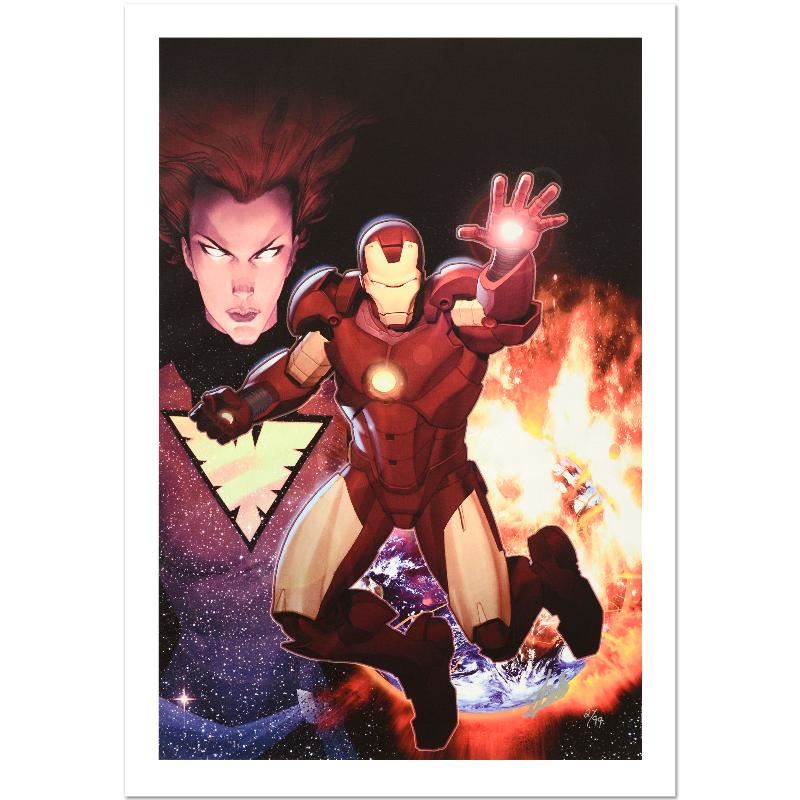 A piece of comic book history, this limited edition print, created by Ariel Olivetti, depicts an intense Iron Man. Ariel Olivetti's first work with Marvel was The Last Avengers Story in 1995. Since then, Olivetti has done work for Iron Man, X-Men, and Thor, among others. "Iron Age: Alpha #1" is a numbered limited edition giclee on canvas by Ariel Olivetti presented by Marvel Comics, hand signed by the great Stan Lee! Includes Certificate of Authenticity! Measures approx. 18" x 27" (image).
