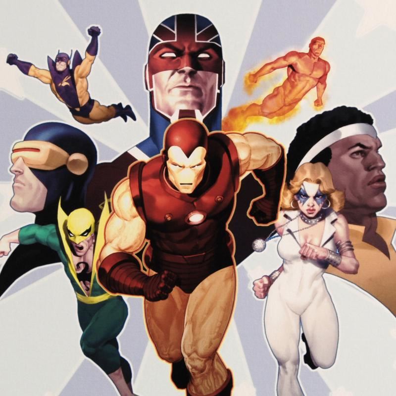 A piece of comic book history, this limited edition, from original art by Ariel Olivetti, depicts Iron Man, Iron Fist, Luke Cage, Dazzler, Cyclops, Captain Britain, Yellow Jacket and Human Torch. Ariel Olivetti's first work with Marvel was The Last Avengers Story in 1995. Since then, Olivetti has done work for Iron Man, X-Men, and Thor, among others. "Iron Age: Omega #1" is a limited edition numbered giclee on stretched canvas by Ariel Olivetti presented by Marvel Comics. This piece comes gallery wrapped. Includes Certificate of Authenticity! Measure approx. 18" x 27" (image); 1.5" (depth).