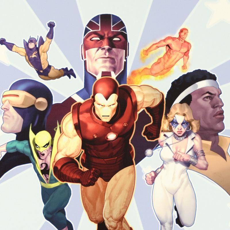 A piece of comic book history, this limited edition, from original art by Ariel Olivetti, depicts Iron Man, Iron Fist, Dazzler, Cyclops, Captain Britain, Yellow Jacket and Human Torch. Ariel Olivetti's first work with Marvel was The Last Avengers Story in 1995. Since then, Olivetti has done work for Iron Man, X-Men, and Thor, among others. "Iron Age: Omega #1" is a limited edition giclee on canvas by Ariel Olivetti presented by Marvel Comics, numbered and hand signed by the great Stan Lee! Includes Certificate of Authenticity! Measures approx. 18" x 27" (image).