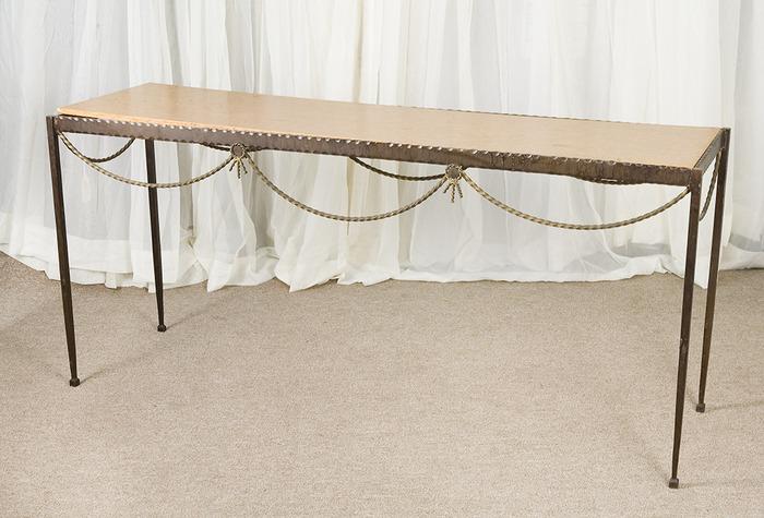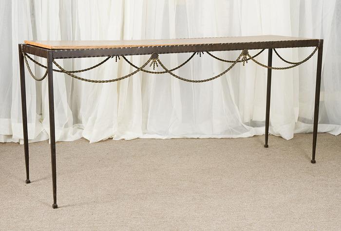 Iron Console Table with Rope Design with wood grain top