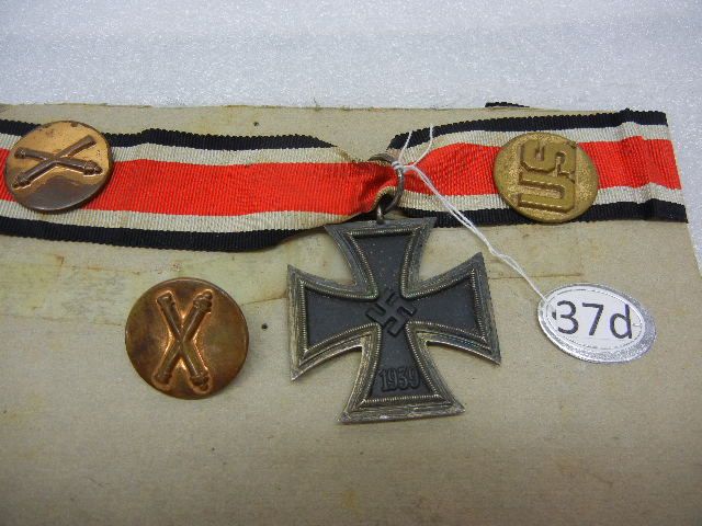 Iron Cross w/ Swastika Medallion, 2 Crossed Cannon Pins, and US Pin