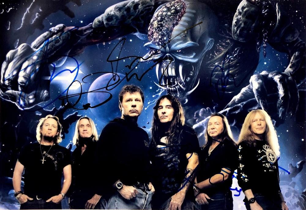 Iron Maiden facsimile signed photo autographed by Bruce Dickinson, Nico McBrain, Janick Gers, Dave Murray and Steve Harris. 8x10 inches. This item is a reprint of an original autograph
