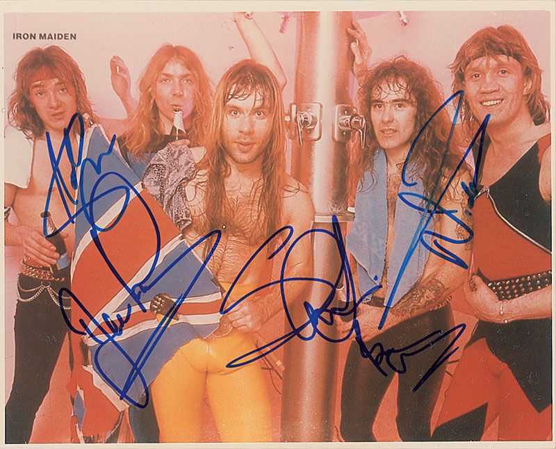 Color glossy 10 x 8 group photo, signed in-person in blue felt tip by all five members. In fine condition. Originally obtained by in-person specialist Mike Wehrmann.