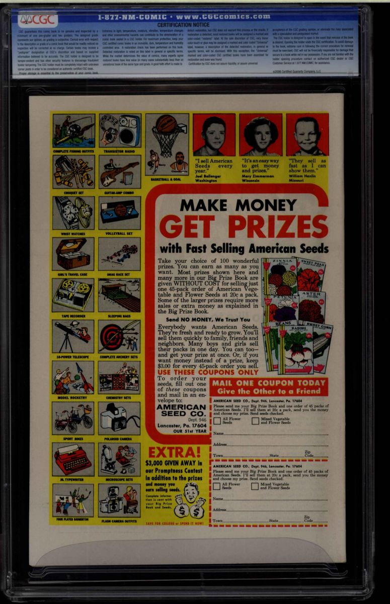 The Auctioneer has reserved the right to reject any and all bids, and to bid at the auction. Auctioneers Auctions are not on approval. Auctioneer does not allow certified material to be returned because of possible differences of opinion with respect to the grade offered by any third party organization, dealer, or service. Absolutely no guarantee of grade is offered for un-certified property sold and subsequently submitted to a third-party grading service. There will be no exceptions to this policy. Under extremely limited circumstances, (e.g. gross cataloging error) a purchaser, who did not bid from the floor, may request Auctioneer to evaluate voiding a sale; such request must be made in writing detailing the alleged gross error, and submission of the lot to the Auctioneer must be pre-approved by the Auctioneer. Bidder must notify Auctioneer in writing of such request within three (3) days of the non-floor bidder receipt of the lot. Any lot that is to be evaluated must be in our offices within 30 days after Auction. Grading does not qualify for this evaluation process nor do such complaints constitute a basis to challenge the authenticity of a lot. AFTER THAT 30-DAY PERIOD, NO LOTS MAY BE RETURNED FOR REASONS OTHER THAN AUTHENTICITY. Lots returned must be housed intact in the original holder. No lots purchased by floor Bidders may be returned (including those Bidders acting as agents for others). Late remittance for purchases may be considered just cause to revoke all return privileges. B: Auctions conducted solely on the Internet have a THREE (3) DAY RETURN POLICY: Lots paid for within seven days of the Auction closing are sold with a three (3) day return privilege. You may return lots under the following conditions: Within three days of receipt of the lot, you must first notify Auctioneer by contacting Client Service by phone (314-680-8599) or e-mail (moundcityauctions@gmail.com), and immediately mail the lot(s) fully insured to the attention of Returns, Mound City Auctions 1081 Teson Rd. Hazelwood, MO. 63042. Lots must be housed intact in their original holder and in their original condition. You are responsible for the insured, safe delivery of any lots. Auctioneer will not be responsible for lots returned in non-registered mail or lots returned without prior authorization per section B. A non-negotiable return fee of 5% of the purchase price ($10 per lot minimum) will be deducted from the refund for each returned lot or billed directly. Postage and handling fees are not refunded. After the three-day period (from receipt), no items may be returned for any reason. Late remittance for purchases revokes all Return-Restock privileges. C: Bidders who have inspected the lots prior to the auction will not be granted any return privileges. D: Comic books sold referencing a third-party grading service are sold “as is” without any express or implied warranty. Certain warranties may be available from the grading services and the Bidder is referred to them for further details: Certified Guaranty Company, LLC. (CGC), P.O. Box 4738, Sarasota, FL 34230. E: Bidders who intend to challenge authenticity or provenance of a lot must notify Auctioneer in writing within thirty (30) days of the Auctions conclusion. In the event Auctioneer cannot deliver the lot or subsequently it is established that the lot lacks title, provenance, authenticity, or other transfer or condition issue is claimed, Auctioneer's liability shall be limited to rescission of sale and refund of purchase price; in no case shall Auctioneer's maximum liability exceed the high bid on that lot, which bid shall be deemed for all purposes the value of the lot. After one year has elapsed, Auctioneer's maximum liability shall be limited to any commissions and fees Auctioneer earned on that lot. F: All comics are guaranteed genuine, but are not guaranteed as to grade, since grading is a matter of opinion, an art and not a science, and therefore the opinion rendered by the Auctioneer or any third party grading service may not agree with the opinion of others (including trained experts), and the same expert may not grade the same item with the same grade at two different times. G: Since we cannot examine encapsulated comics, they are sold “as is”without our grading opinion, and may not be returned for any reason. Auctioneer shall not be liable for any patent or latent defect or controversy pertaining to or arising from any encapsulated collectible. In any such instance, purchaser's remedy, if any, shall be solely against the service certifying the collectible. H: Due to changing grading standards over time, differing interpretations, and to possible mishandling of items by subsequent owners, Auctioneer reserves the right to grade items differently than shown on certificates from any grading service that accompany the items. Auctioneer also reserves the right to grade items differently than the grades shown in the prior catalog should such items be reconsigned to any future auction. I: Although consensus grading is employed by most grading services, it should be noted as aforesaid that grading is not an exact science. In fact, it is entirely possible that if a lot is broken out of a plastic holder and resubmitted to another grading service or even to the same service, the lot could come back with a different grade assigned. J: Certification does not guarantee protection against the normal risks associated with potentially volatile markets. The degree of liquidity for certified collectibles will vary according to general market conditions and the particular lot involved. For some lots there may be no active market at all at certain points in time."