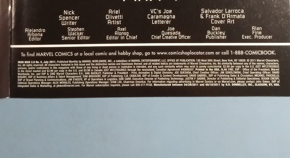 Iron Man 2.0 #5 Fear Itself Crossover (Marvel Comics, 2011) Signed Cover