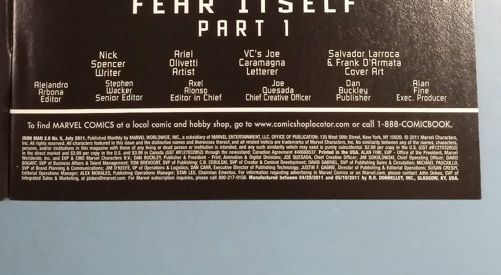 Iron Man 2.0 #5 (Marvel, 2011) Fear Itself Tie-In, Spencer & Olivetti