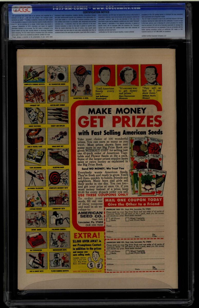 The Auctioneer has reserved the right to reject any and all bids, and to bid at the auction. Auctioneers Auctions are not on approval. Auctioneer does not allow certified material to be returned because of possible differences of opinion with respect to the grade offered by any third party organization, dealer, or service. Absolutely no guarantee of grade is offered for un-certified property sold and subsequently submitted to a third-party grading service. There will be no exceptions to this policy. Under extremely limited circumstances, (e.g. gross cataloging error) a purchaser, who did not bid from the floor, may request Auctioneer to evaluate voiding a sale; such request must be made in writing detailing the alleged gross error, and submission of the lot to the Auctioneer must be pre-approved by the Auctioneer. Bidder must notify Auctioneer in writing of such request within three (3) days of the non-floor bidder receipt of the lot. Any lot that is to be evaluated must be in our offices within 30 days after Auction. Grading does not qualify for this evaluation process nor do such complaints constitute a basis to challenge the authenticity of a lot. AFTER THAT 30-DAY PERIOD, NO LOTS MAY BE RETURNED FOR REASONS OTHER THAN AUTHENTICITY. Lots returned must be housed intact in the original holder. No lots purchased by floor Bidders may be returned (including those Bidders acting as agents for others). Late remittance for purchases may be considered just cause to revoke all return privileges. B: Auctions conducted solely on the Internet have a THREE (3) DAY RETURN POLICY: Lots paid for within seven days of the Auction closing are sold with a three (3) day return privilege. You may return lots under the following conditions: Within three days of receipt of the lot, you must first notify Auctioneer by contacting Client Service by phone (314-680-8599) or e-mail (moundcityauctions@gmail.com), and immediately mail the lot(s) fully insured to the attention of Returns, Mound City Auctions 1081 Teson Rd. Hazelwood, MO. 63042. Lots must be housed intact in their original holder and in their original condition. You are responsible for the insured, safe delivery of any lots. Auctioneer will not be responsible for lots returned in non-registered mail or lots returned without prior authorization per section B. A non-negotiable return fee of 5% of the purchase price ($10 per lot minimum) will be deducted from the refund for each returned lot or billed directly. Postage and handling fees are not refunded. After the three-day period (from receipt), no items may be returned for any reason. Late remittance for purchases revokes all Return-Restock privileges. C: Bidders who have inspected the lots prior to the auction will not be granted any return privileges. D: Comic books sold referencing a third-party grading service are sold “as is” without any express or implied warranty. Certain warranties may be available from the grading services and the Bidder is referred to them for further details: Certified Guaranty Company, LLC. (CGC), P.O. Box 4738, Sarasota, FL 34230. E: Bidders who intend to challenge authenticity or provenance of a lot must notify Auctioneer in writing within thirty (30) days of the Auctions conclusion. In the event Auctioneer cannot deliver the lot or subsequently it is established that the lot lacks title, provenance, authenticity, or other transfer or condition issue is claimed, Auctioneer's liability shall be limited to rescission of sale and refund of purchase price; in no case shall Auctioneer's maximum liability exceed the high bid on that lot, which bid shall be deemed for all purposes the value of the lot. After one year has elapsed, Auctioneer's maximum liability shall be limited to any commissions and fees Auctioneer earned on that lot. F: All comics are guaranteed genuine, but are not guaranteed as to grade, since grading is a matter of opinion, an art and not a science, and therefore the opinion rendered by the Auctioneer or any third party grading service may not agree with the opinion of others (including trained experts), and the same expert may not grade the same item with the same grade at two different times. G: Since we cannot examine encapsulated comics, they are sold “as is”without our grading opinion, and may not be returned for any reason. Auctioneer shall not be liable for any patent or latent defect or controversy pertaining to or arising from any encapsulated collectible. In any such instance, purchaser's remedy, if any, shall be solely against the service certifying the collectible. H: Due to changing grading standards over time, differing interpretations, and to possible mishandling of items by subsequent owners, Auctioneer reserves the right to grade items differently than shown on certificates from any grading service that accompany the items. Auctioneer also reserves the right to grade items differently than the grades shown in the prior catalog should such items be reconsigned to any future auction. I: Although consensus grading is employed by most grading services, it should be noted as aforesaid that grading is not an exact science. In fact, it is entirely possible that if a lot is broken out of a plastic holder and resubmitted to another grading service or even to the same service, the lot could come back with a different grade assigned. J: Certification does not guarantee protection against the normal risks associated with potentially volatile markets. The degree of liquidity for certified collectibles will vary according to general market conditions and the particular lot involved. For some lots there may be no active market at all at certain points in time."