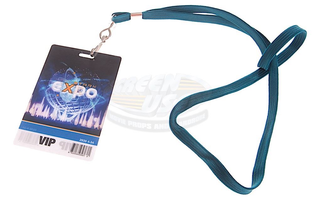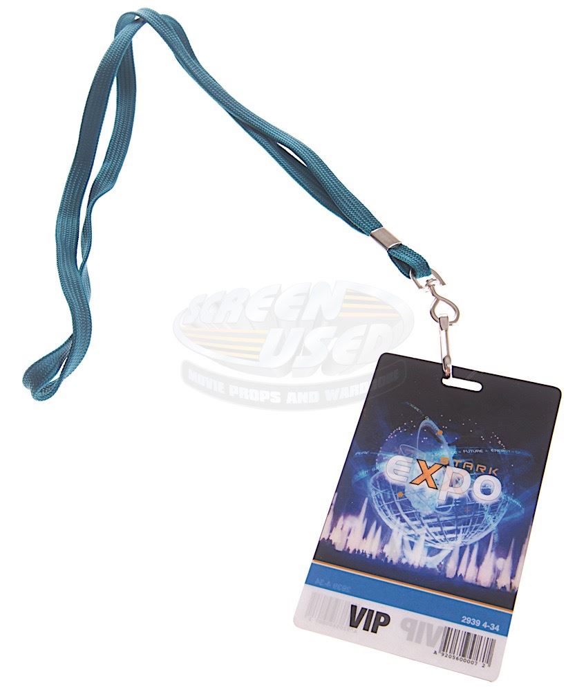 (Paramount, 2010) This prop ID badge was custom-made by the production for use by various extras during filming. The badge features the "Stark Expo" logo on both sides and is marked "VIP. The badge is attached to a nylon lanyard.