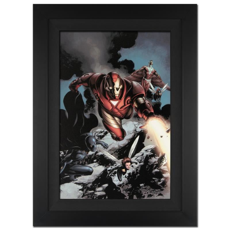 A piece of comic book history, this limited edition, from original art by Steve Epting, depicts the Avengers including: Iron Man Falcon, Wasp, Ant-Man and Black Panther. Steve Epting began working with Marvel Comics in the early 1990s; his first assignment was a six part Avengers series, thereafter he became a full time penciler on the Avengers. More recently Epting has been working on the Fantastic Four as well as Captain America. "Iron Man #85" is an extremely limited edition giclee on canvas by Steve Epting presented by Marvel Comics, hand signed by the great Stan Lee and numbered out of only 10! This piece comes custom framed and ready to hang. Includes Certificate of Authenticity! Measures approx. 25" x 34" (with frame), 18" x 27" (image).