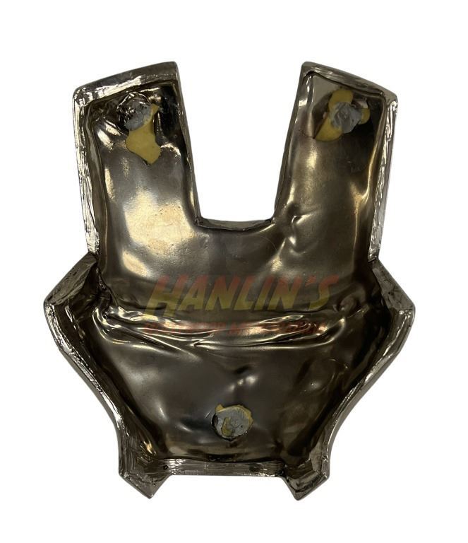 Made of lightweight resin type material, faceplate heavily chrome plated. Comes in two pieces. 3 attachment points can be seen underneath where they dipped it in the chrome.