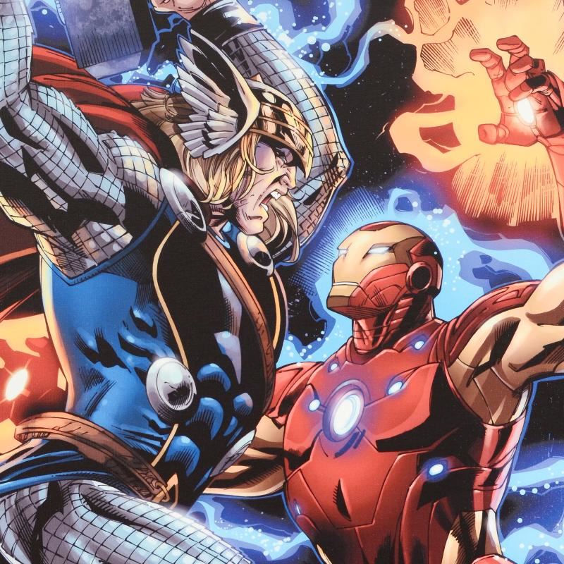 A piece of comic book history, this limited edition, from original art by Scot Eaton, depicts an action packed scene starring Iron Man and Thor. Born and raised in Vermont, Scot Eaton's artistic talent became apparent in elementary school when he created detailed drawings of dinosaurs and comic characters like Spider-Man. After high school and college, Eaton started penciling for DC comics from his apartment in the early 1990's. He went on to draw Silver Surfer and Thor for Marvel. "Iron Man/Thor #3" is a limited edition giclee on canvas by Scot Eaton presented by Marvel Comics, numbered and hand signed by the great Stan Lee! Includes Certificate of Authenticity! Measures approx. 18" x 27" (image).