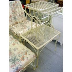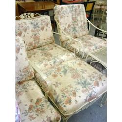 Group of Iron Patio Furniture, Includes Sofa, Chairs, and Tables (Condition is Consistent with Outdoor Use, Cushions, Showing Some Staining, Overall in Fair Condition, Structurally Sound).