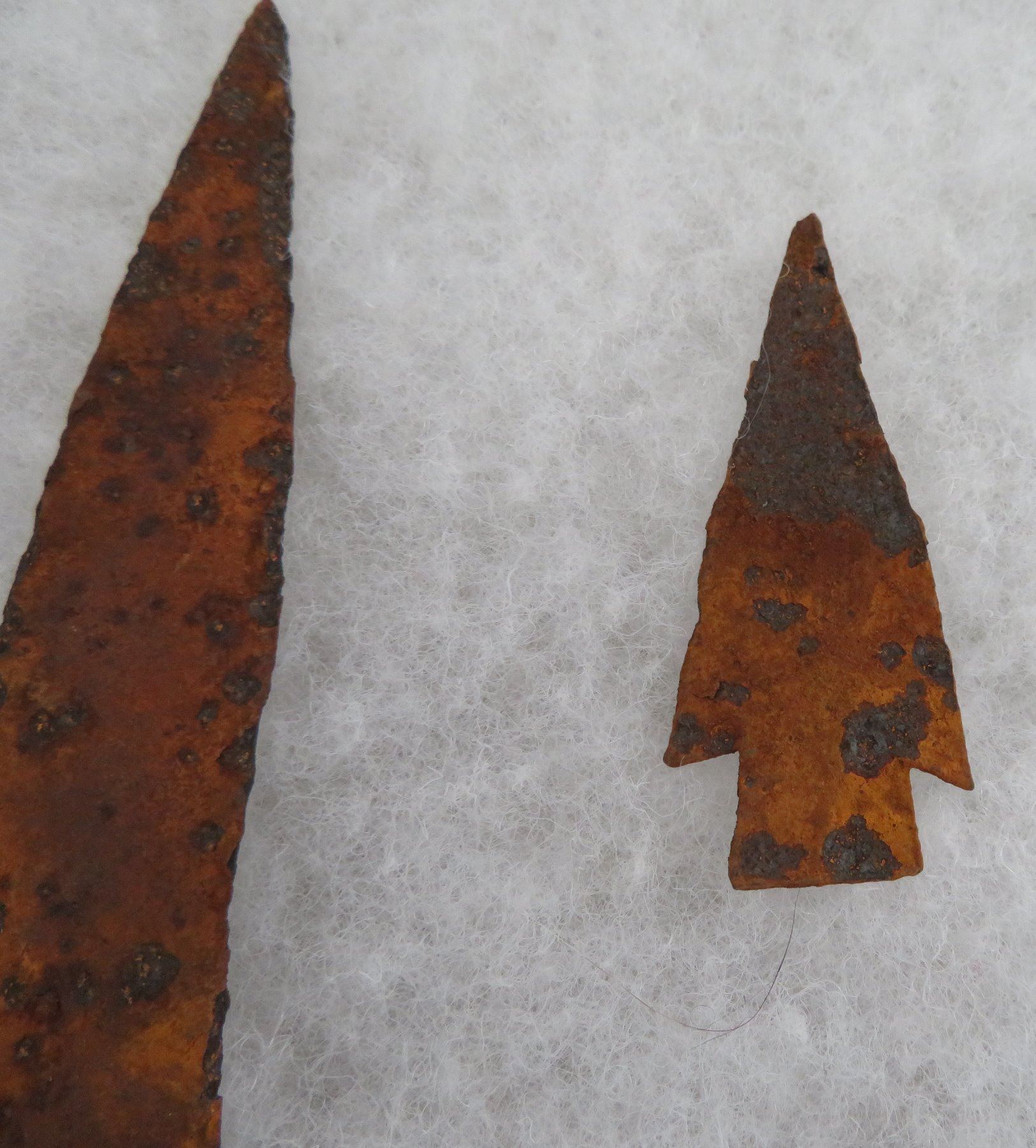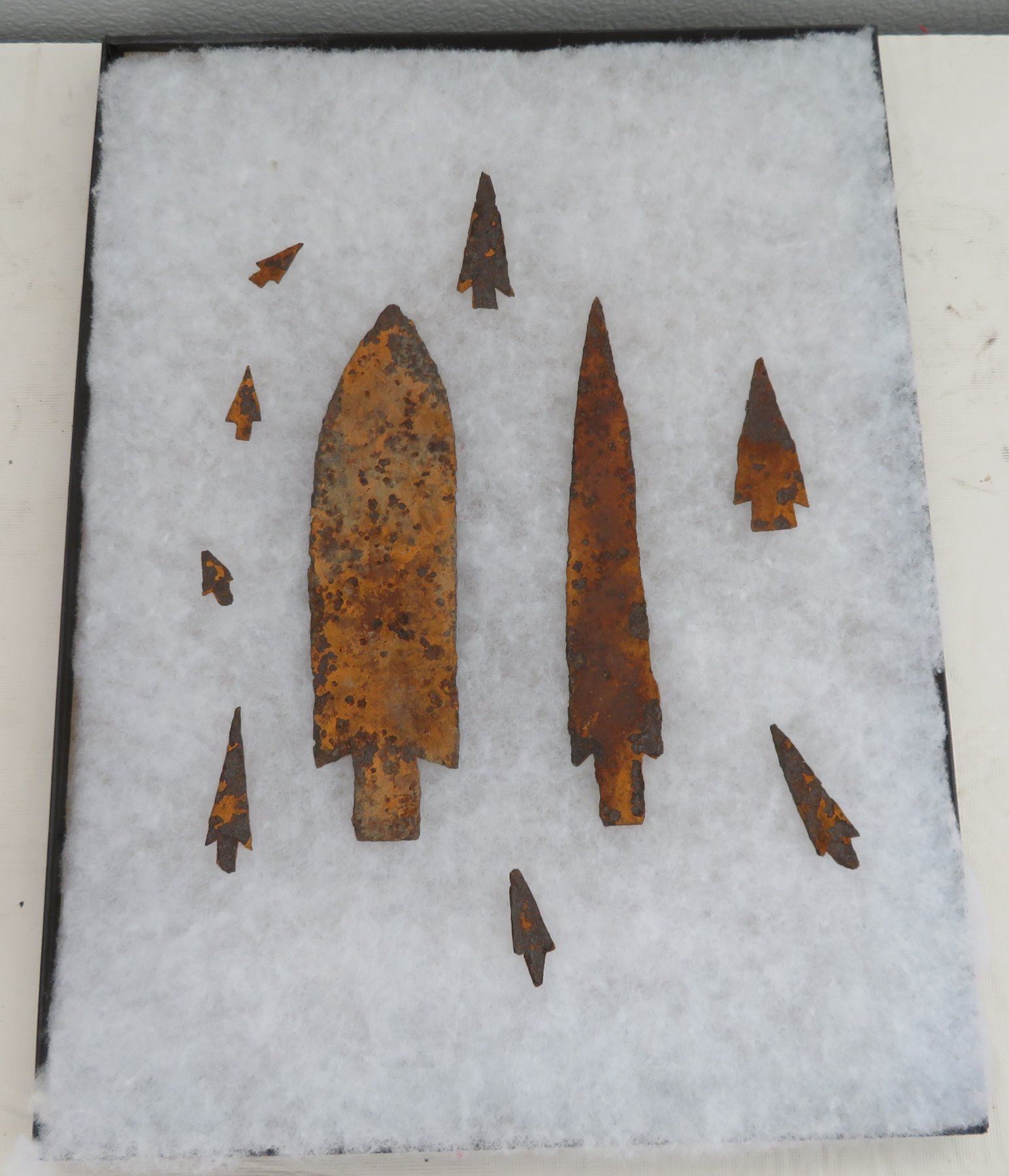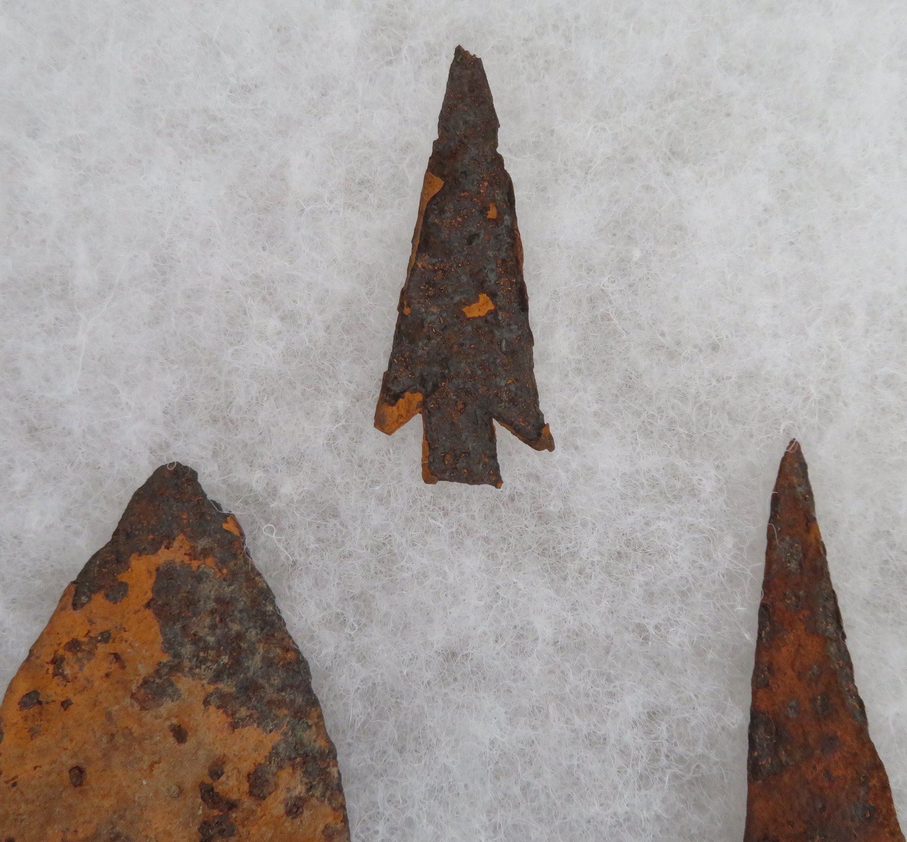 Iron Trade Points, c. 1800s. Made of iron, the longest measures 7 1/2". Colorado. Frame not included. Condition: Rusty, as found, see images. Shipping: $20.00 w/insurance and signature.