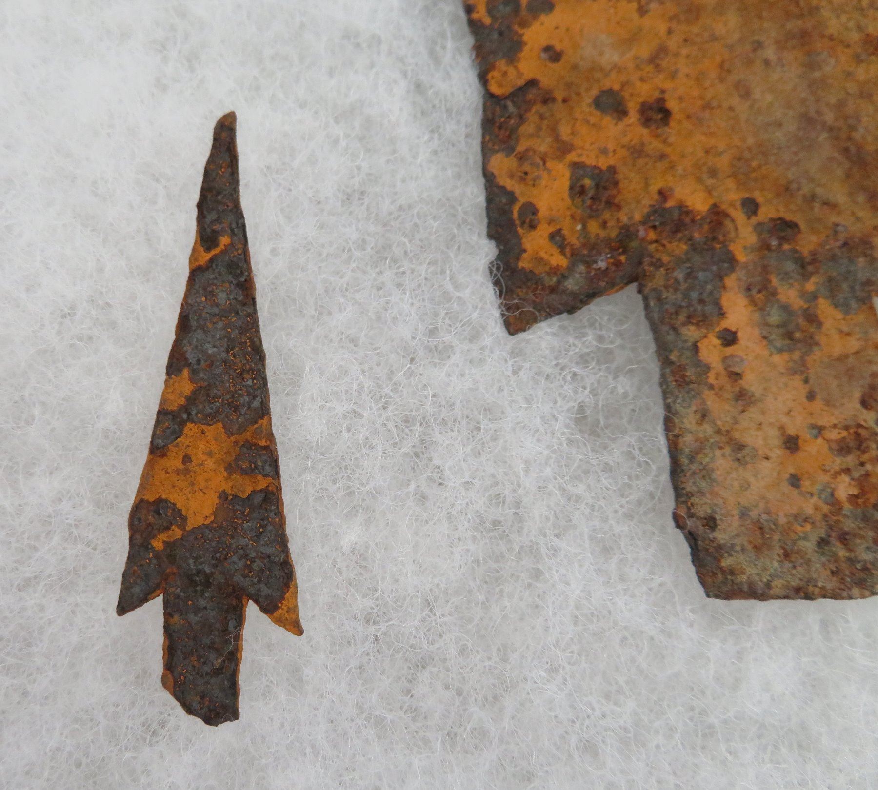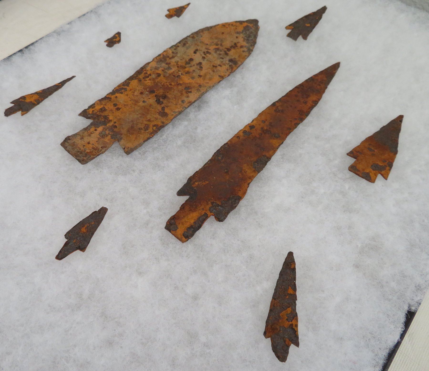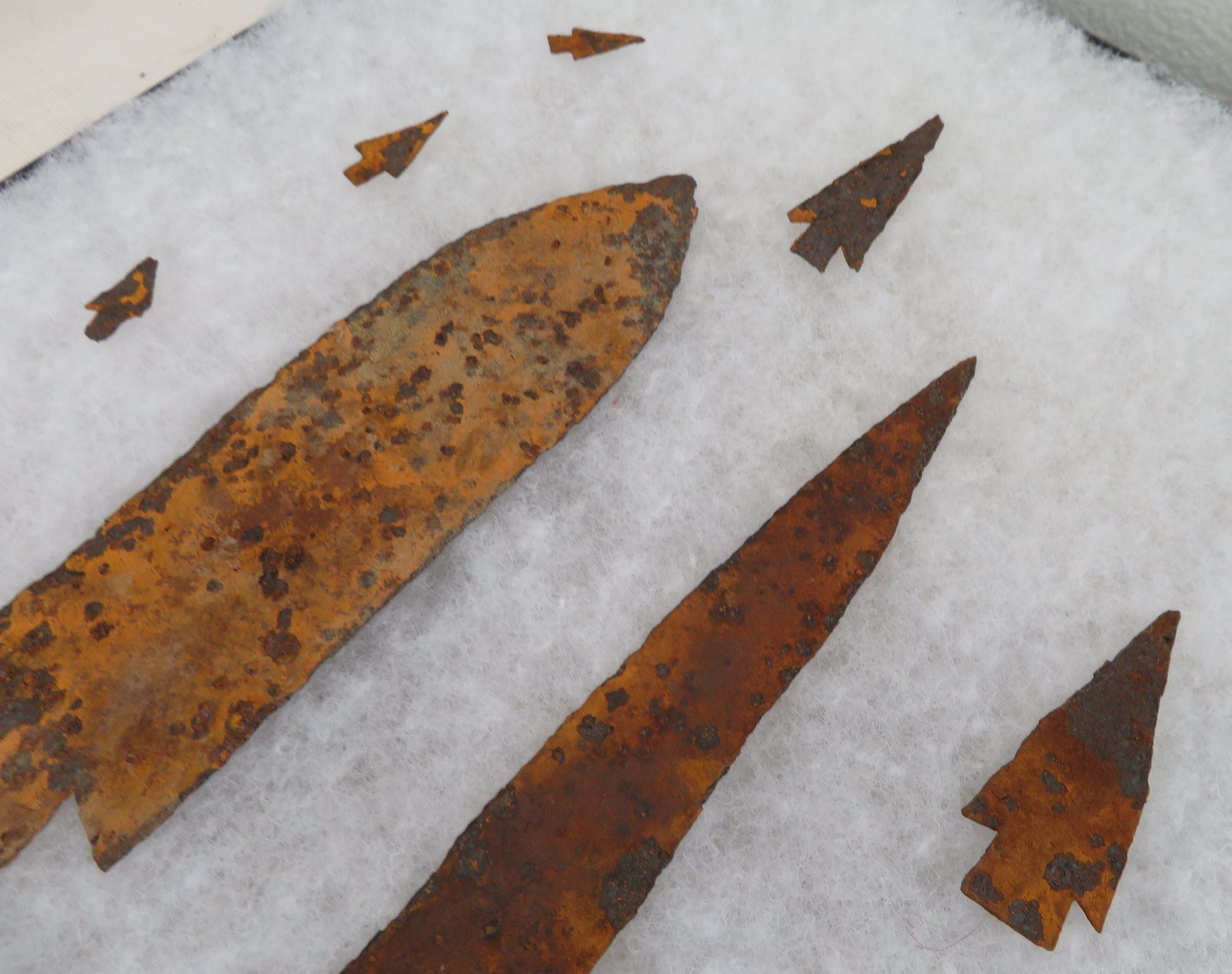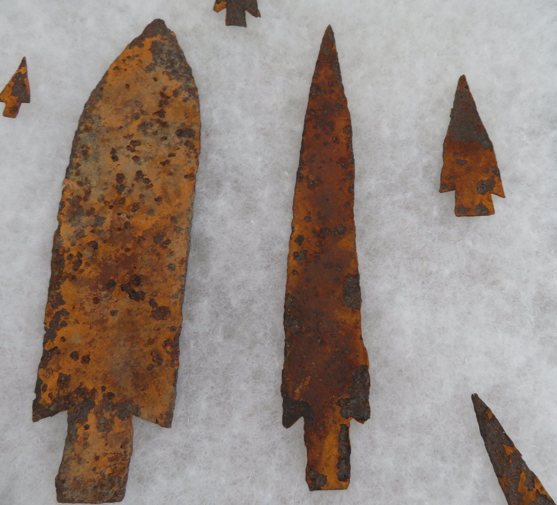 Iron Trade Points, c. 1800s. Made of iron, the longest measures 7 1/2". Colorado. Frame not included. Condition: Rusty, as found, see images. Shipping: $20.00 w/insurance and signature.