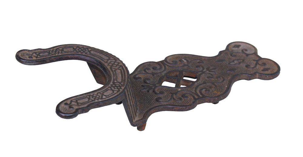 A stylish decorative old iron bootjack.
