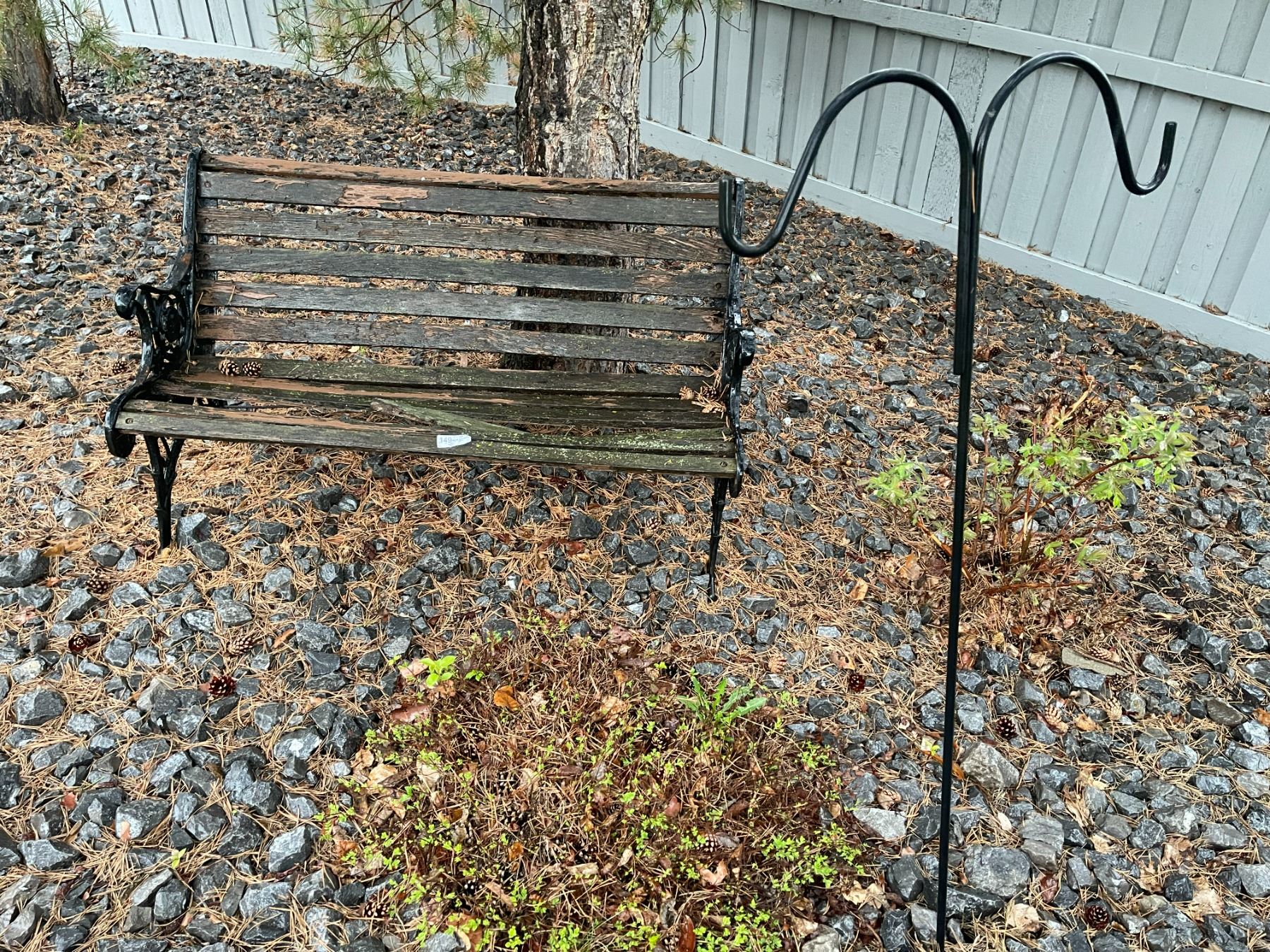 Iron/Wood Garden Bench & Plant Hanger - Bench May Require Small Repairs