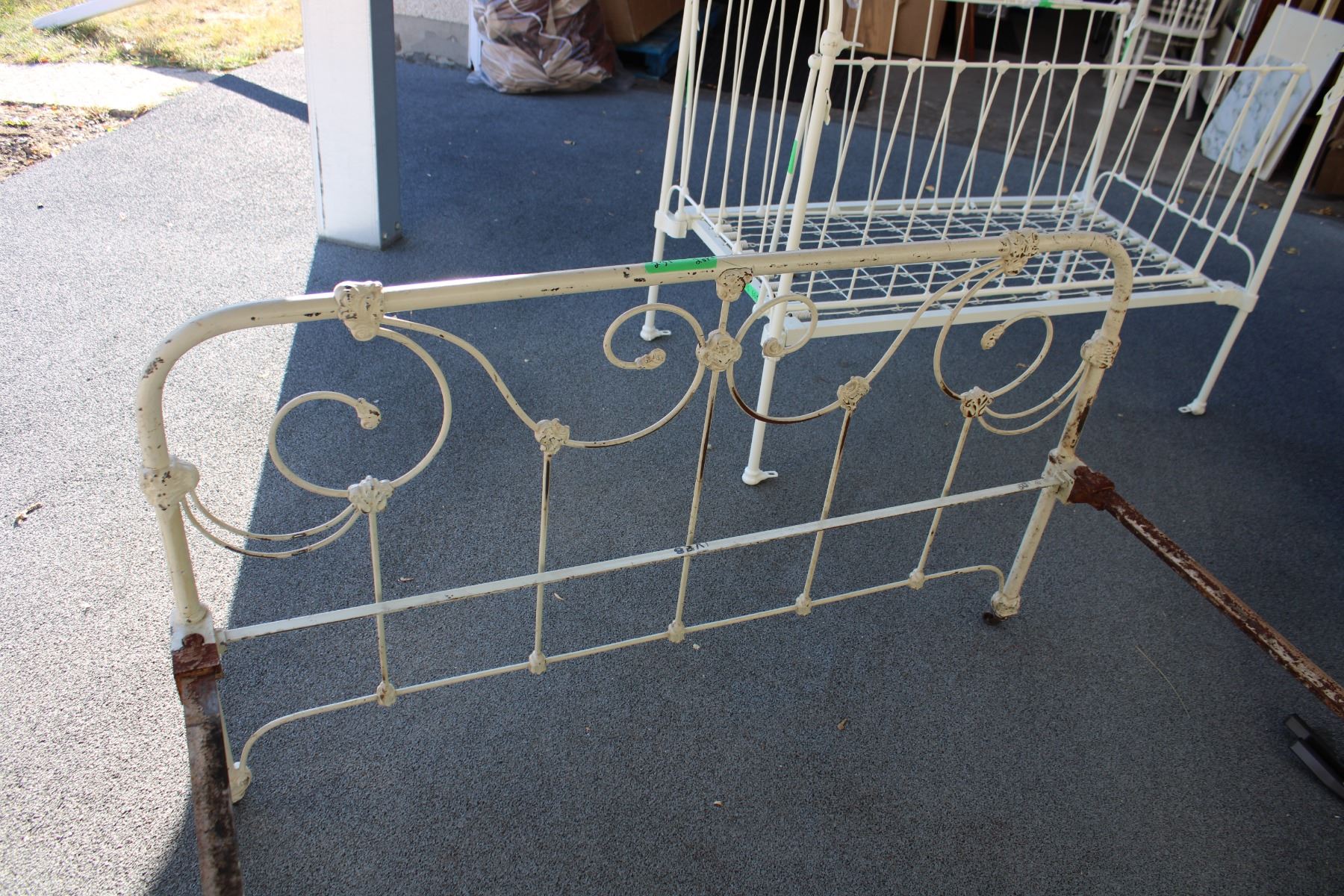 Iron bed frame (double size) on casters - 53.5x72 (rusty rails)