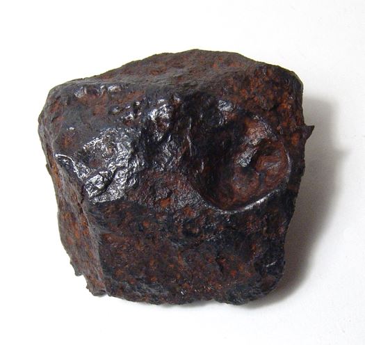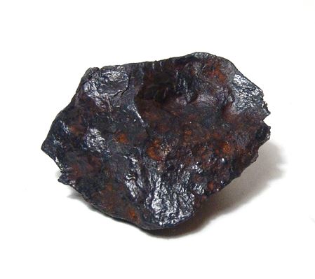 An iron meteorite from the world famous Canyon Diablo impact in Northern Arizona. A solid and compact example with jagged surfaces highlighting the force of the impact which occurred around 50,000 years ago. The crater is known today as the Barringer Crater or Meteor Crater, and the fragments of the meteorite which impacted there are named after the nearby by Canyon Diablo, which lies three to four miles west. 2 1/2 in x 2 3/8 in (6.4 x 6 cm).