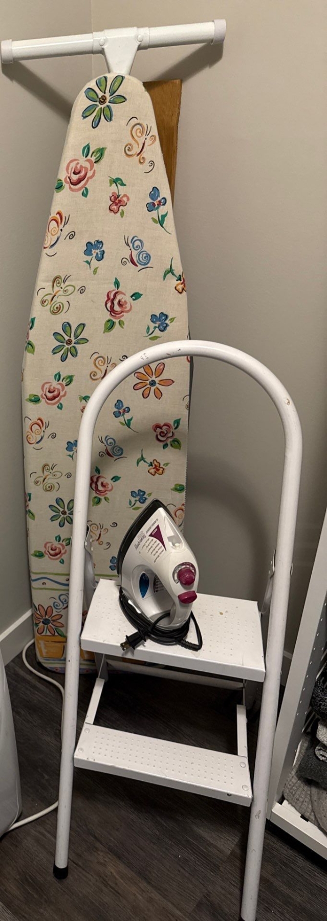 Ironing Board, Iron, Step Ladder, & Laundry Fixings Tide, Downy, Febreeze Swifter Wipes & More