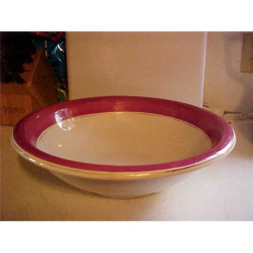Ironstone bowl; 14.5" Diameter X 4.5" tall; signed Star Pottery Co., Paris; red and gold band. (c) 1800's
