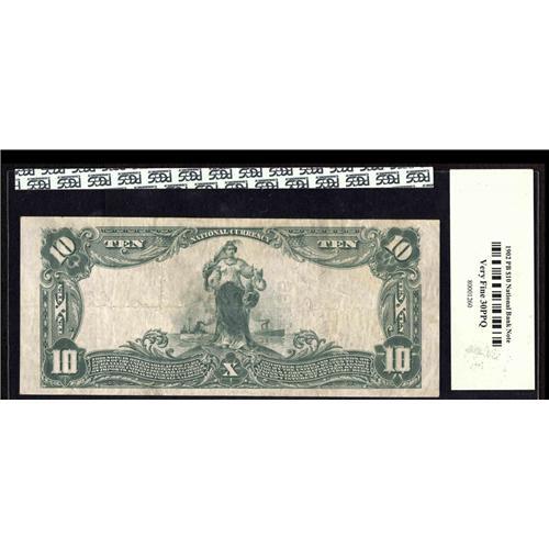 <B>Ironton, OH</B></I> - $10 1902 Plain Back Fr. 627 <B>The Citizens NB</B></I> Ch. # 4336<BR>Printed signatures of W.P. Lewis and A.H. Mittendorf adorn this note from this elusive bank. Cashier Lewis would later climb to the position of president of the Citizens. <B>PCGS Very Fine 30PPQ.</B></I>