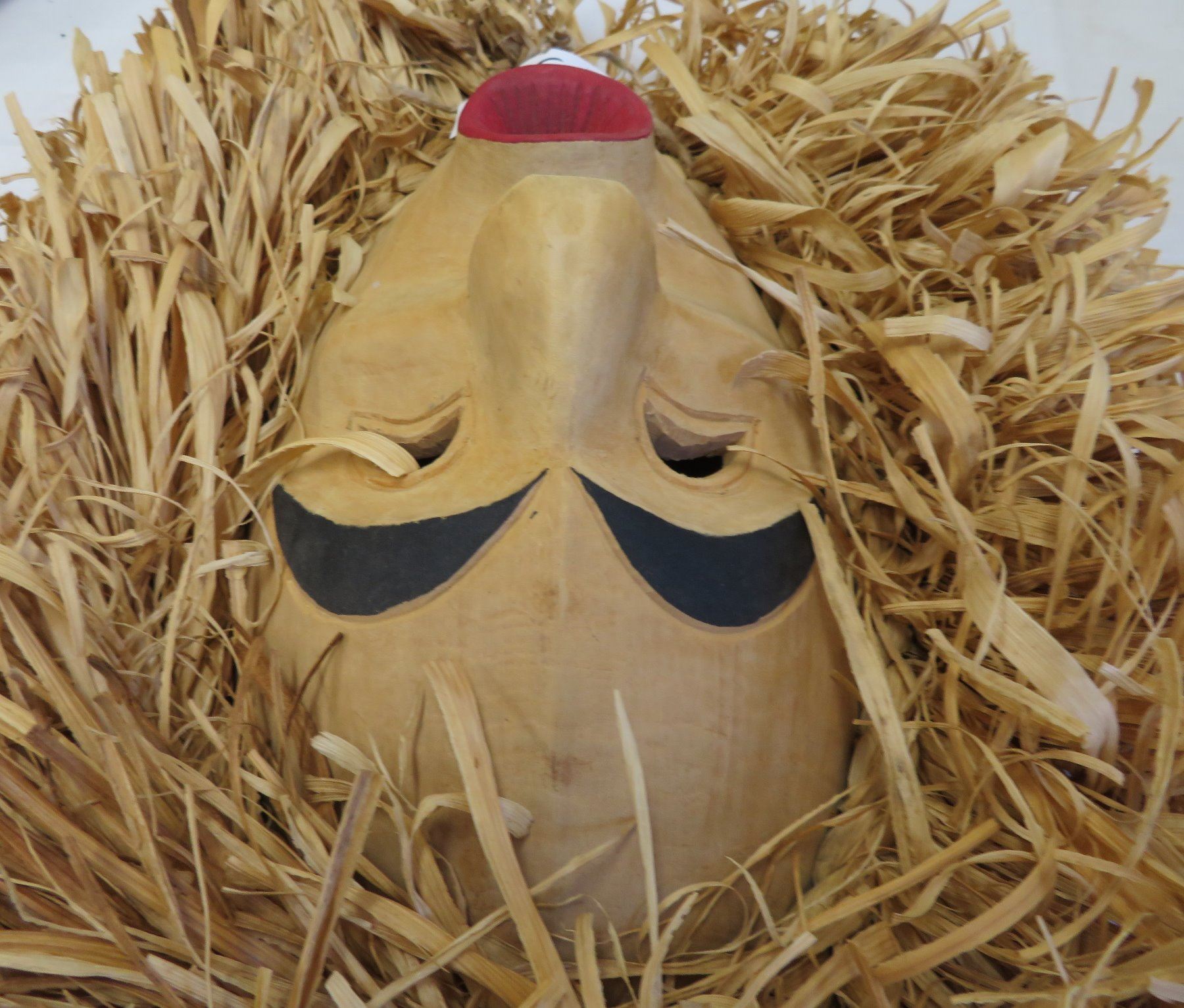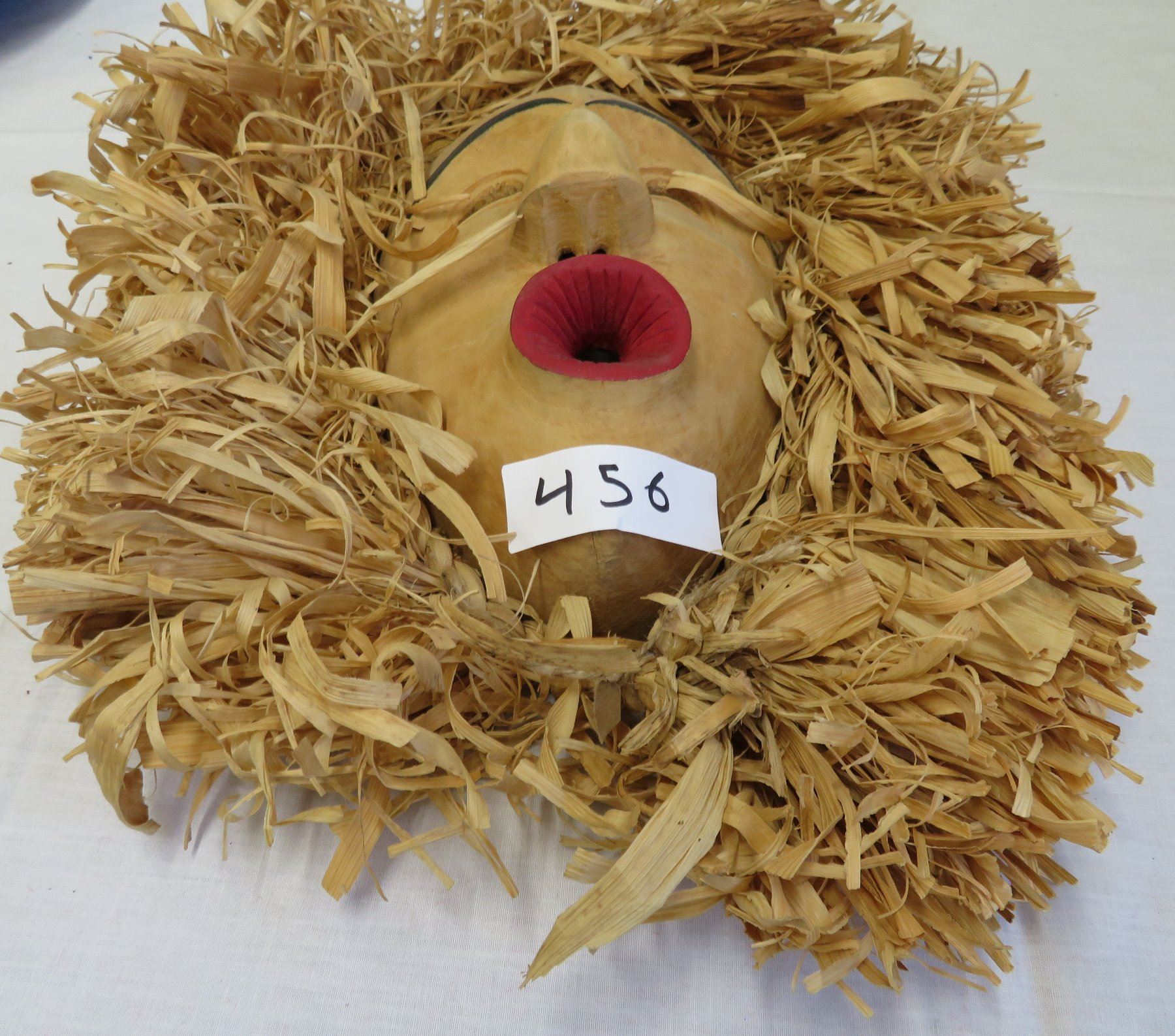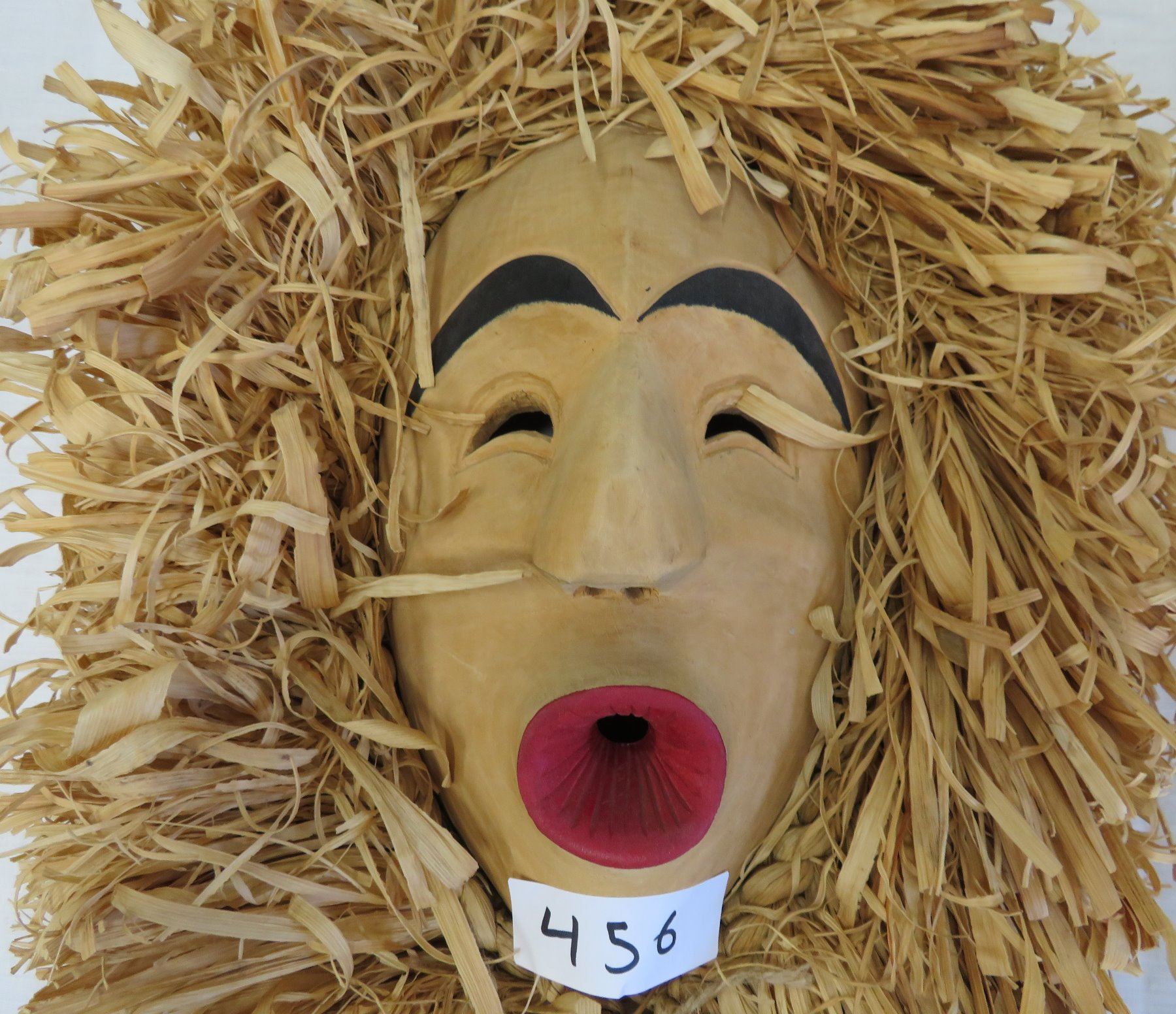 Iroquois Wood False Face Mask, c. 1950s. Made of bird wood and corn husk, the item measures 14" x 18" x 3" with husk. Iroquois. Nice, unusual item. Condition: Good, see images. Shipping: $40.00 USA estimate only, w/insurance and signature, due to size and value.