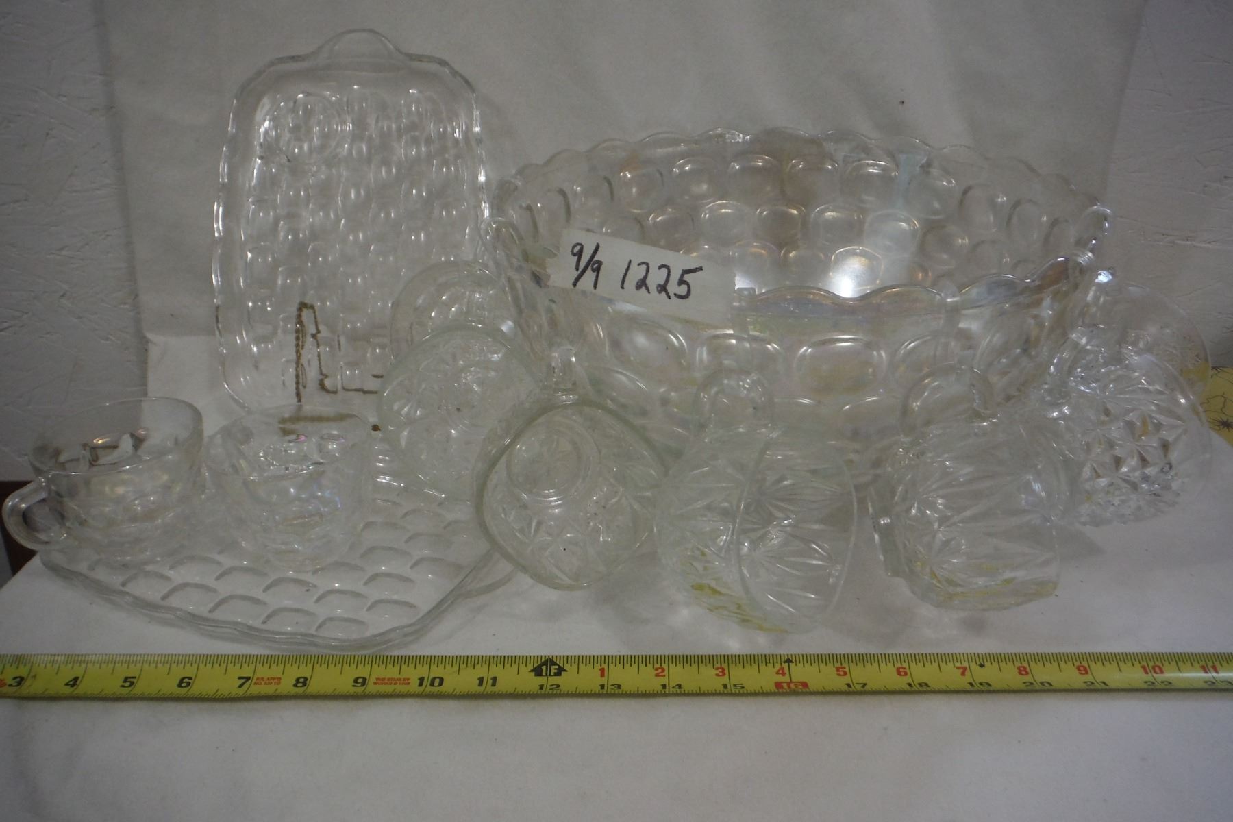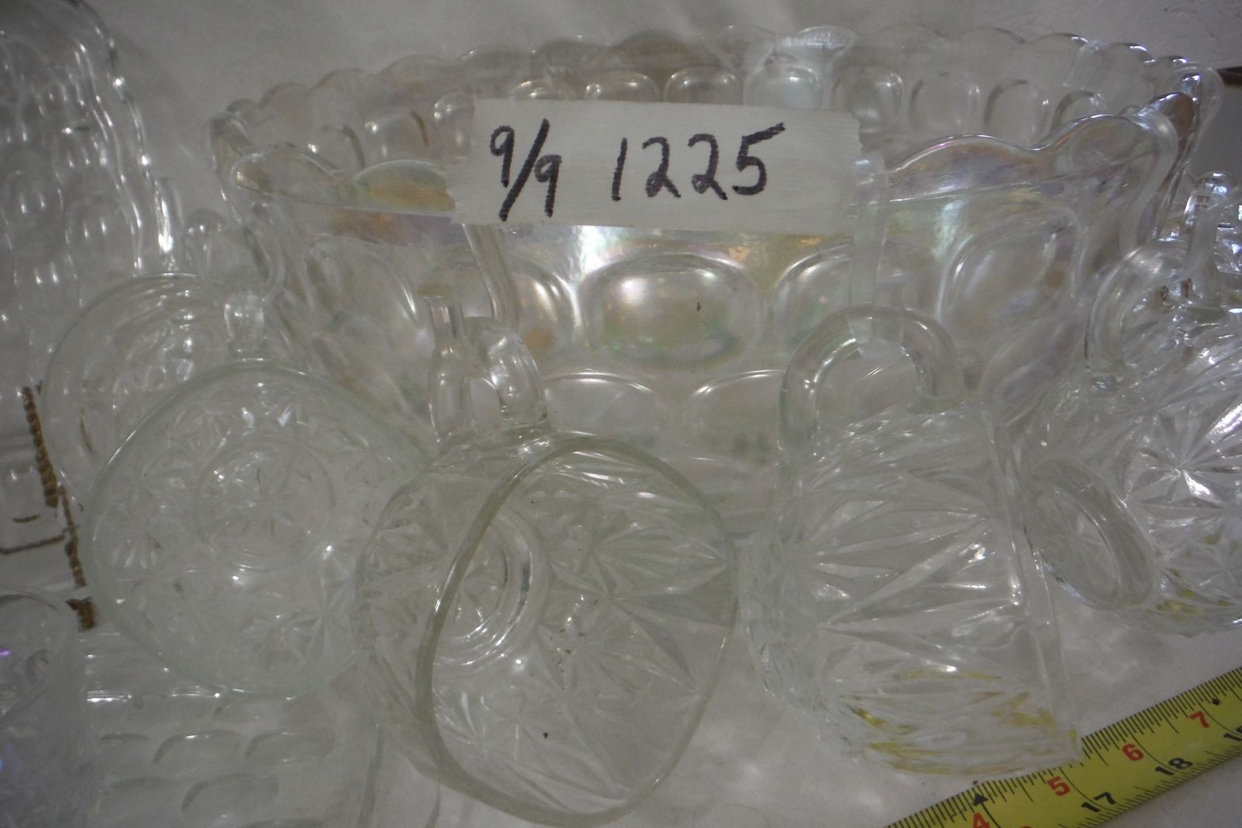 Irridescent Punch Bol c/w 2 plates, 9 cups and hooks(32)