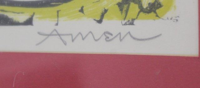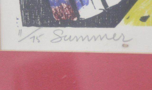 "Piper," signed, titled, and numbered 1/1, approx. 35" H x 20" W sight, 41" H x 26" W framed; and "Summer," pencil signed, titled, and numbered 11/75, approx. 21" H x 17" W sight, 28 1/2" H x 23 1/2" W framed. Irving Amen (1918-2011).
