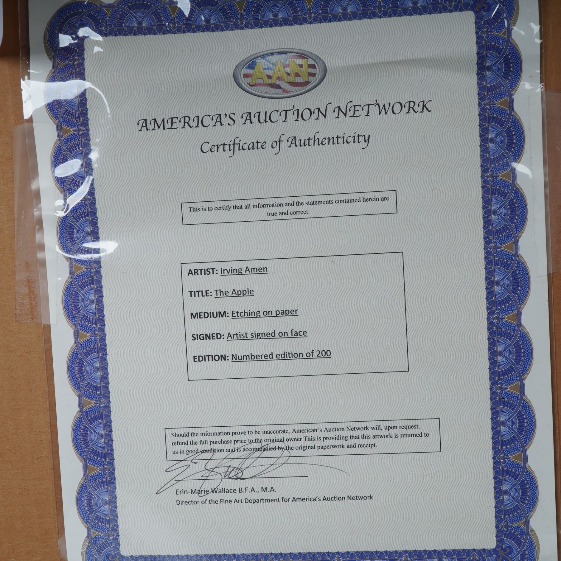 Irving Amen, Limited Edition Etching on Paper, The Apple, Signed & COA