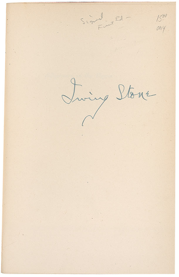 Signed book: Anniversary in the House. First edition. NY: Doubleday, 1947. Hardcover with dustjacket, 6 x 8.75, 432 pages. Signed in fountain pen on the second free end page. Pencil notations to signed page, owner’s name written on front pastedown, light wear to covers and spine, and scattered light wear and price clip to dustjacket, otherwise fine condition.