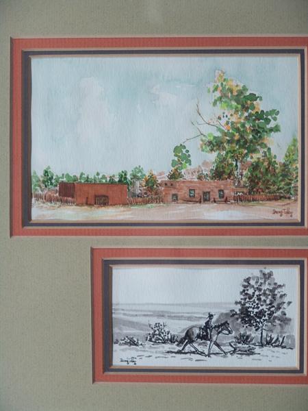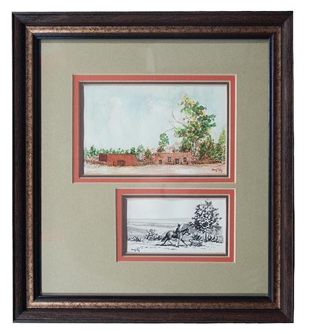 One original signed watercolor and one pen and watercolor. Both Southwestern landscapes. Both signed. 13" x 12" with frame