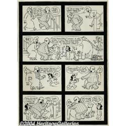 <B>Irving Tripp (Attributed) - Little Lulu Golden Magazine Page Original Art (Western Publishing, circa 1960s).</B></I> Little Lulu wakes up on Christmas morning to find everything she wished for -- including a baby elephant (who just ate the family's Christmas tree), a giraffe, a kangaroo, and other assorted animals! Can you blame her mother for fainting? A great seven-panel page originally printed in <B>Golden Magazine</B></I>, a children's publication best remembered for its many paper dolls, puzzles, games, and the occasional comic story like this. The art is in Excellent condition, measures approximately 15" x 20", and has been professionally double-matted in white and black, to an overall size of 20" x 25". Lulu sure looks cute in those Dr. Denton pajamas! <BR><BR><B>Important notice:</B> Heritage usually auctions material at the rate of 200-250 lots per hour. On some occasions eBay Live bid software or the Internet may not be able to keep up with the pace of the auction. We recommend placing a realistic absentee bid now as insurance to avoid disappointment. Occasionally the auctioneer may eliminate or reject an eBay Live bid, and the auctioneer may also reopen a lot after the close of the eBay live bidding (usually because we missed an audience bid), and may reject your bid even if it shows you as the winning bidder. By bidding via eBay Live, you agree that Heritage may award the lot to another bidder at its sole discretion under the circumstances described above or any other reasonable circumstances. Since eBay bids are not shown to us until we open the lot on the floor, we treat those bids just like floor bids. In most cases the floor responds before the eBay bid is presented to us, due to Internet lag time, so for consistency we have made it a policy that floor bids are always considered first over tie eBay live bids. Also please note that all Heritage lots purchased through eBay Live carry a 20% Buyer's Premium. Please make sure you read the Terms and Conditions before you bid. </span></font></tr></table></td></tr></table>