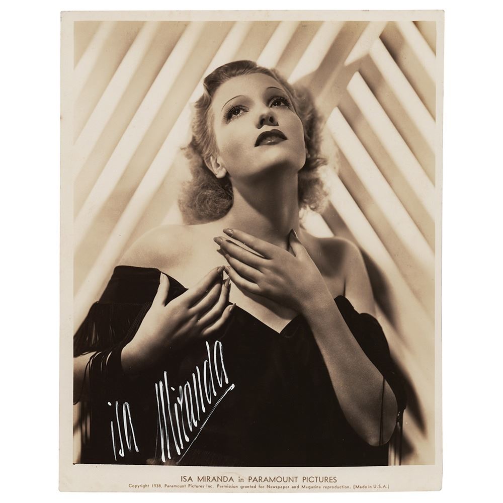 Beautiful vintage glossy 8 x 10 Paramount promotional photo of Isa Miranda in a striking head-and-shoulders pose, prominently signed in white ink. In fine condition.