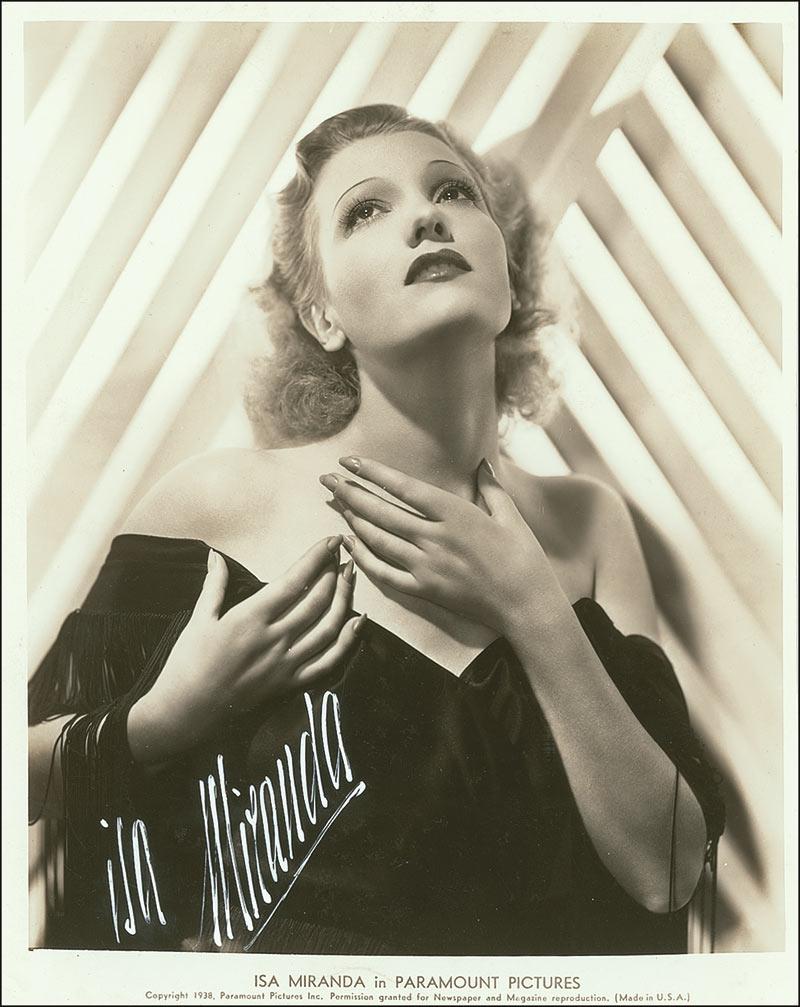 Vintage glossy 8 x 10 Paramount publicity photo, signed in white ink. In very good condition, with scattered creases and surface marks.