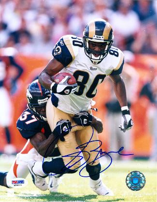 Isaac Bruce was drafted by the Los Angeles Rams in the second round of the 1994 NFL Draft. An All-Pro and four-time Pro Bowl selection, Bruce has amassed 15,208 receiving yards in his career (third all-time). He played the first 14 years with the Rams and won a Super Bowl ring with the team in Super Bowl XXXIV. Isaac Bruce has hand autographed this St. Louis Rams 8x10 Photo. PSA Hologram and Certificate of Authenticity.