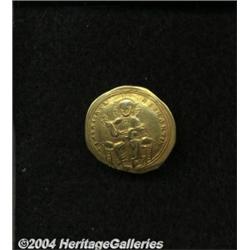 <B>Isaac I.</B></I> 1057-1059. AV histamenon nomisma (24 mm, 4.28 g). Constantinople. Christ enthroned facing, raising right hand in benediction and holding Gospels / Isaac standing facing, holding drawn sword. DOC 2; SB 1843. Good VF. <BR><I>From the Geneva Collection.</B></I> <BR><BR><B>Important notice:</B> Heritage usually auctions material at the rate of 200-250 lots per hour. On some occasions eBay Live bid software or the Internet may not be able to keep up with the pace of the auction. We recommend placing a realistic absentee bid now as insurance to avoid disappointment. Occasionally the auctioneer may eliminate or reject an eBay Live bid, and the auctioneer may also reopen a lot after the close of the eBay live bidding (usually because we missed an audience bid), and may reject your bid even if it shows you as the winning bidder. By bidding via eBay Live, you agree that Heritage may award the lot to another bidder at its sole discretion under the circumstances described above or any other reasonable circumstances. Since eBay bids are not shown to us until we open the lot on the floor, we treat those bids just like floor bids. In most cases the floor responds before the eBay bid is presented to us, due to Internet lag time, so for consistency we have made it a policy that floor bids are always considered first over tie eBay live bids. Also please note that all Heritage lots purchased through eBay Live carry a 20% Buyer's Premium. Please make sure you read the Terms and Conditions before you bid.