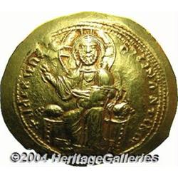 <B>Isaac I.</B></I> 1057-1059. AV histamenon nomisma (28 mm, 4.40 g). Constantinople. Christ enthroned facing, raising right hand in benediction and holding Gospels / Isaac standing facing, holding labarum. DOC 1; SB 1844. Good VF. <BR><I>From the Geneva Collection.</B></I> <BR><BR><B>Important notice:</B> Heritage usually auctions material at the rate of 200-250 lots per hour. On some occasions eBay Live bid software or the Internet may not be able to keep up with the pace of the auction. We recommend placing a realistic absentee bid now as insurance to avoid disappointment. Occasionally the auctioneer may eliminate or reject an eBay Live bid, and the auctioneer may also reopen a lot after the close of the eBay live bidding (usually because we missed an audience bid), and may reject your bid even if it shows you as the winning bidder. By bidding via eBay Live, you agree that Heritage may award the lot to another bidder at its sole discretion under the circumstances described above or any other reasonable circumstances. Since eBay bids are not shown to us until we open the lot on the floor, we treat those bids just like floor bids. In most cases the floor responds before the eBay bid is presented to us, due to Internet lag time, so for consistency we have made it a policy that floor bids are always considered first over tie eBay live bids. Also please note that all Heritage lots purchased through eBay Live carry a 20% Buyer's Premium. Please make sure you read the Terms and Conditions before you bid.